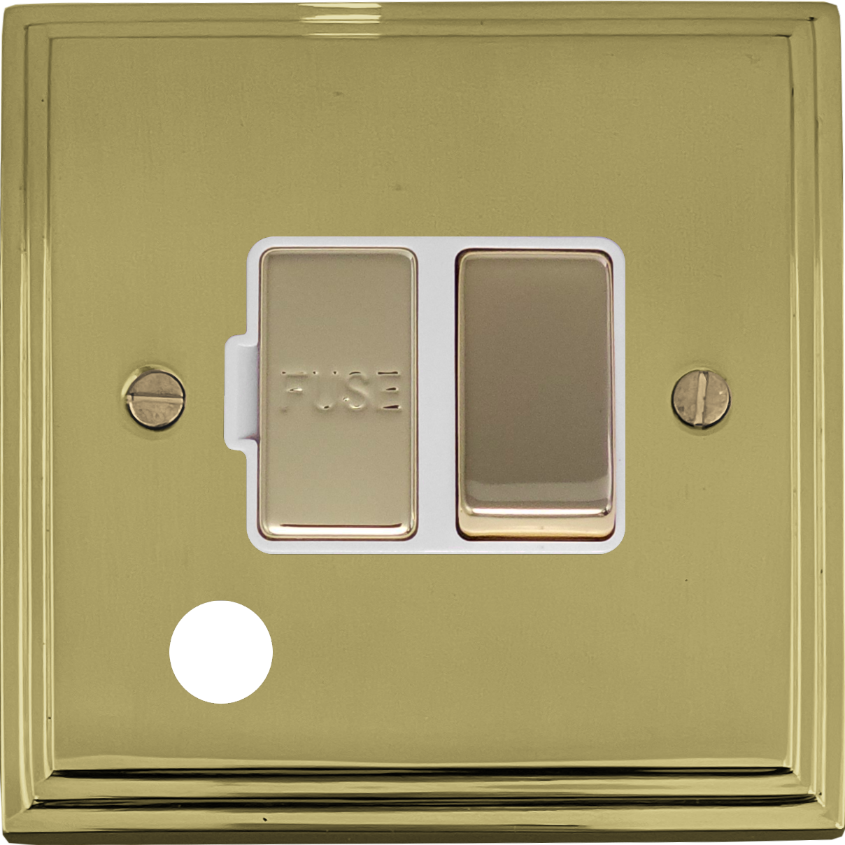 Victorian Cast Polished Brass Switched Fused Spur with Flex Outlet (White Insert) - G+H VB256