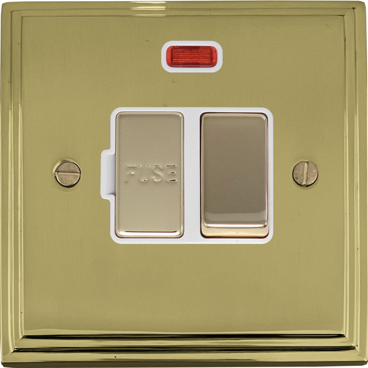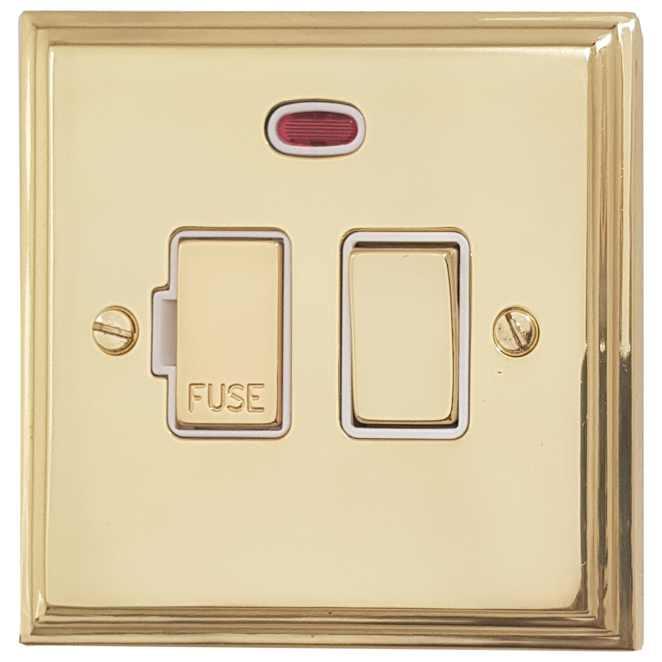 Victorian Cast Polished Brass Switched Fused Spur with Neon (White Insert) - G+H VB227