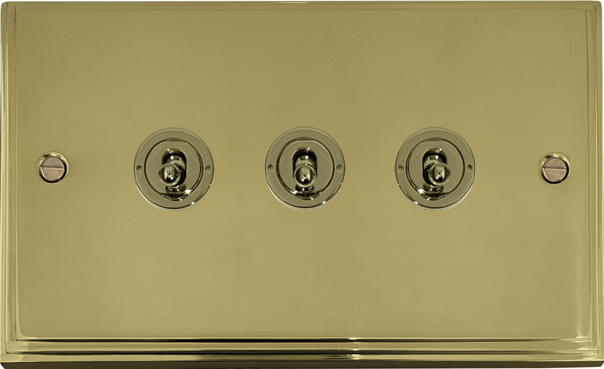 Victorian Cast Polished Brass Toggle Switch (3 Gang) - G+H VB383