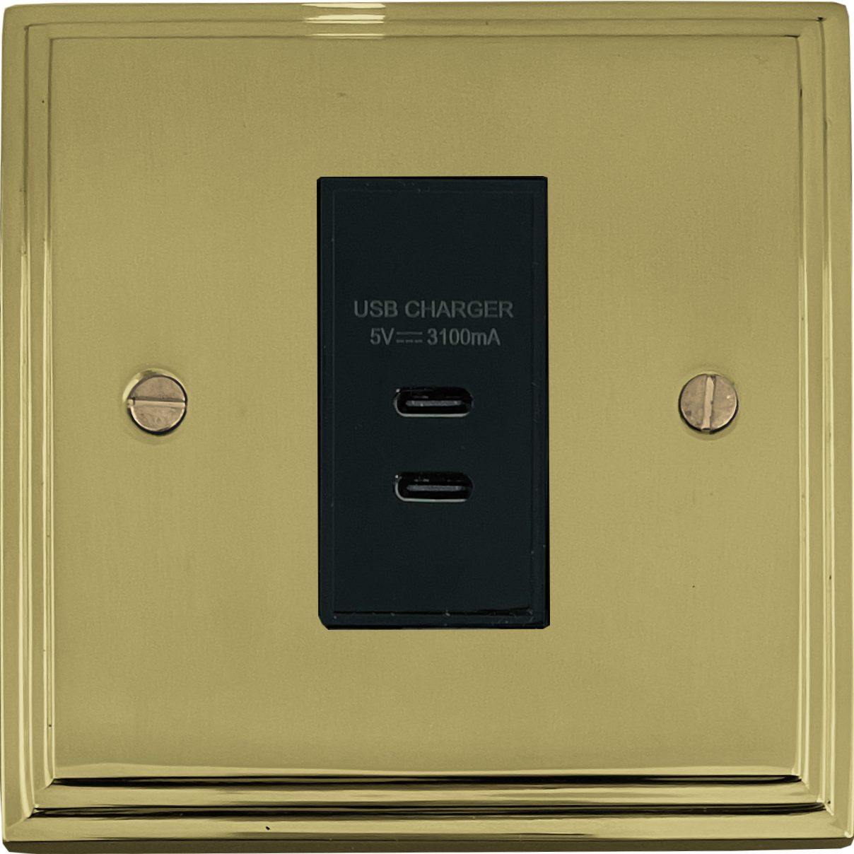 Victorian Cast Polished Brass USB Charger (2x USB-C) - G+H VB42B