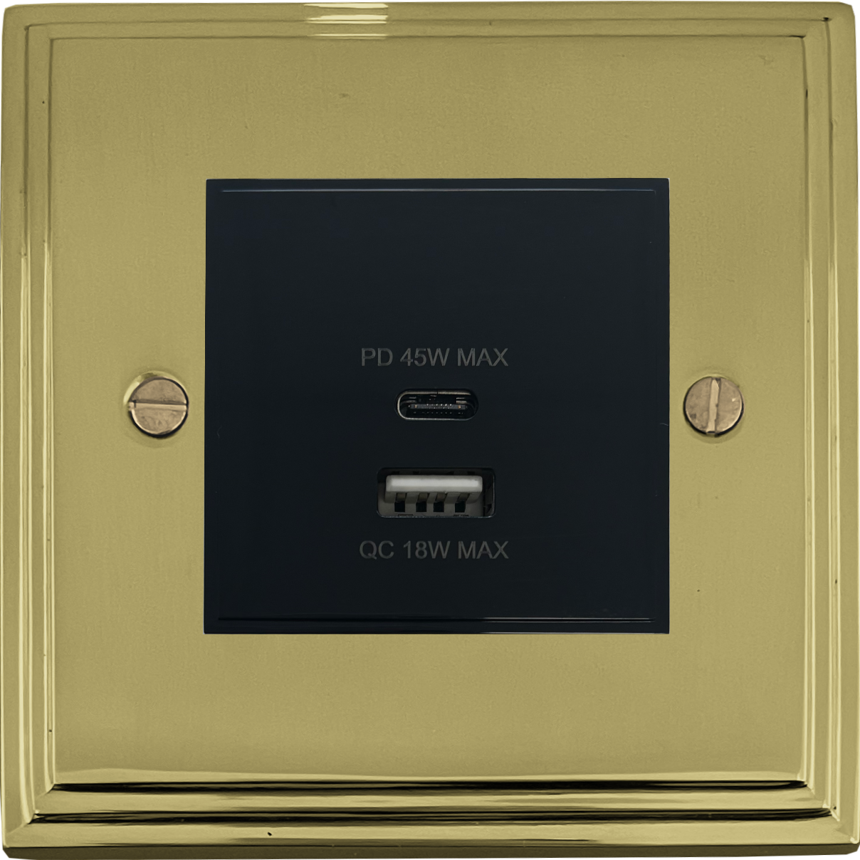 Victorian Cast Polished Brass USB Charger (Dual USB A + C Quick Charge) - G+H VB43B
