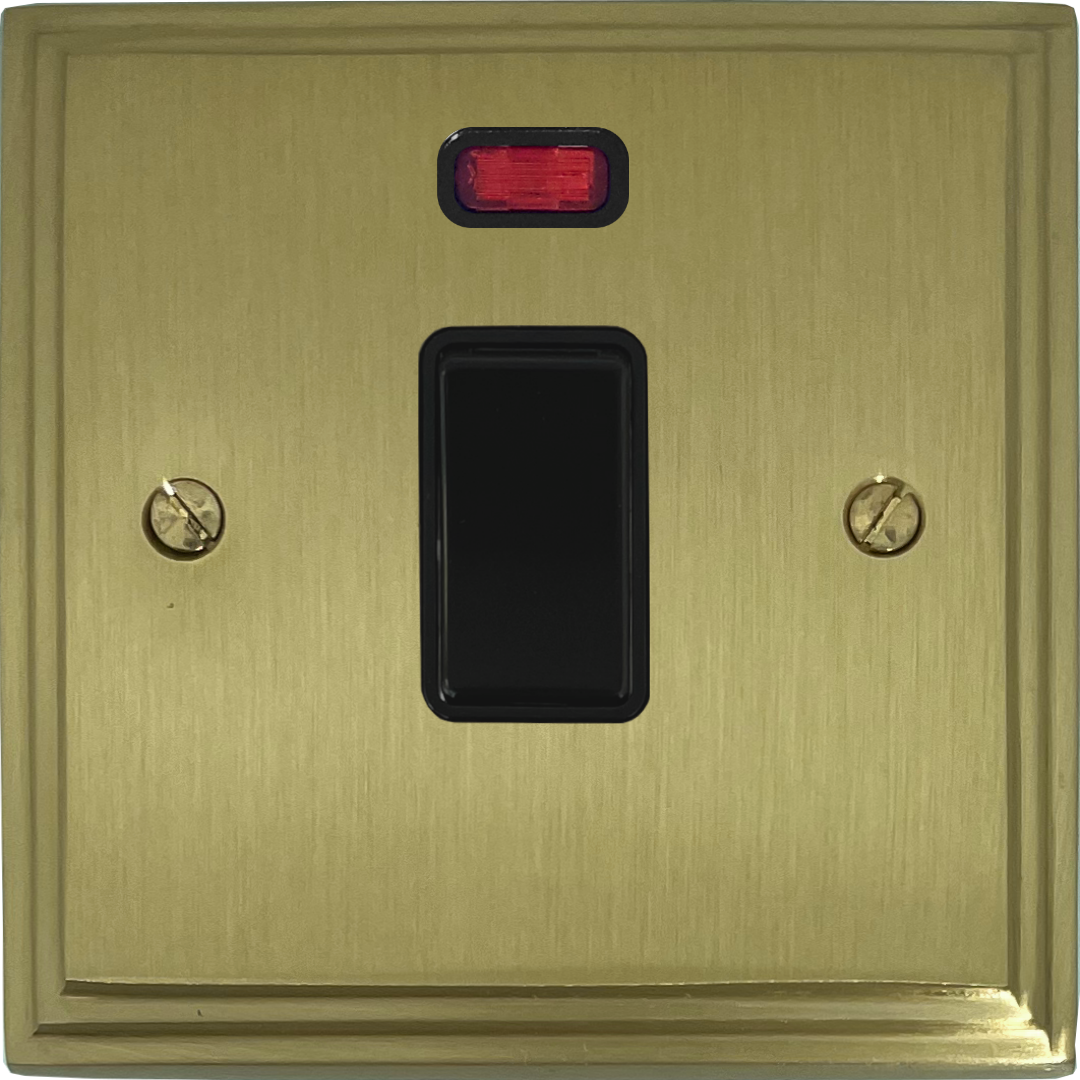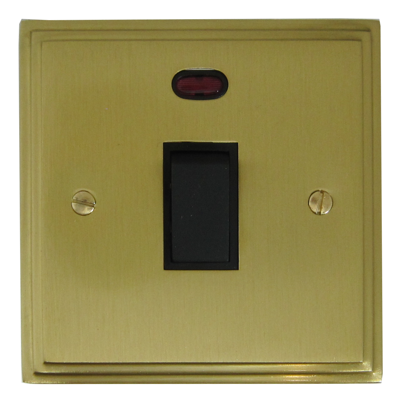 Victorian Cast Satin Brass 20A DP Switch with Neon (Black Switch) - G+H VSB26B