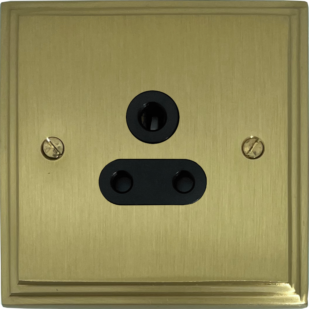 Victorian Cast Satin Brass 5A 3 Pin Socket (Black Insert) - G+H VSB59B