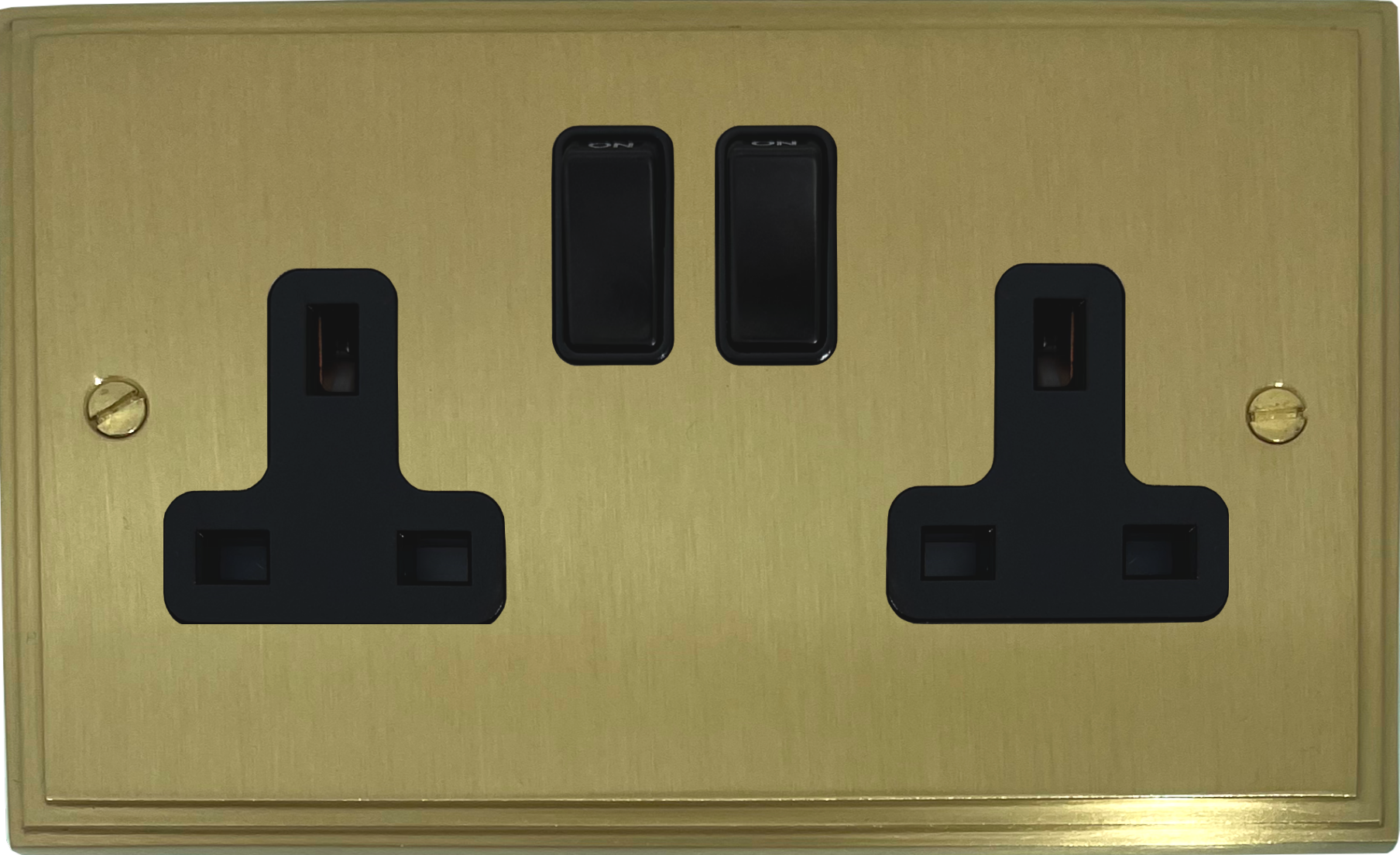 Victorian Cast Satin Brass Double Socket (Black Switches) - G+H VSB10B