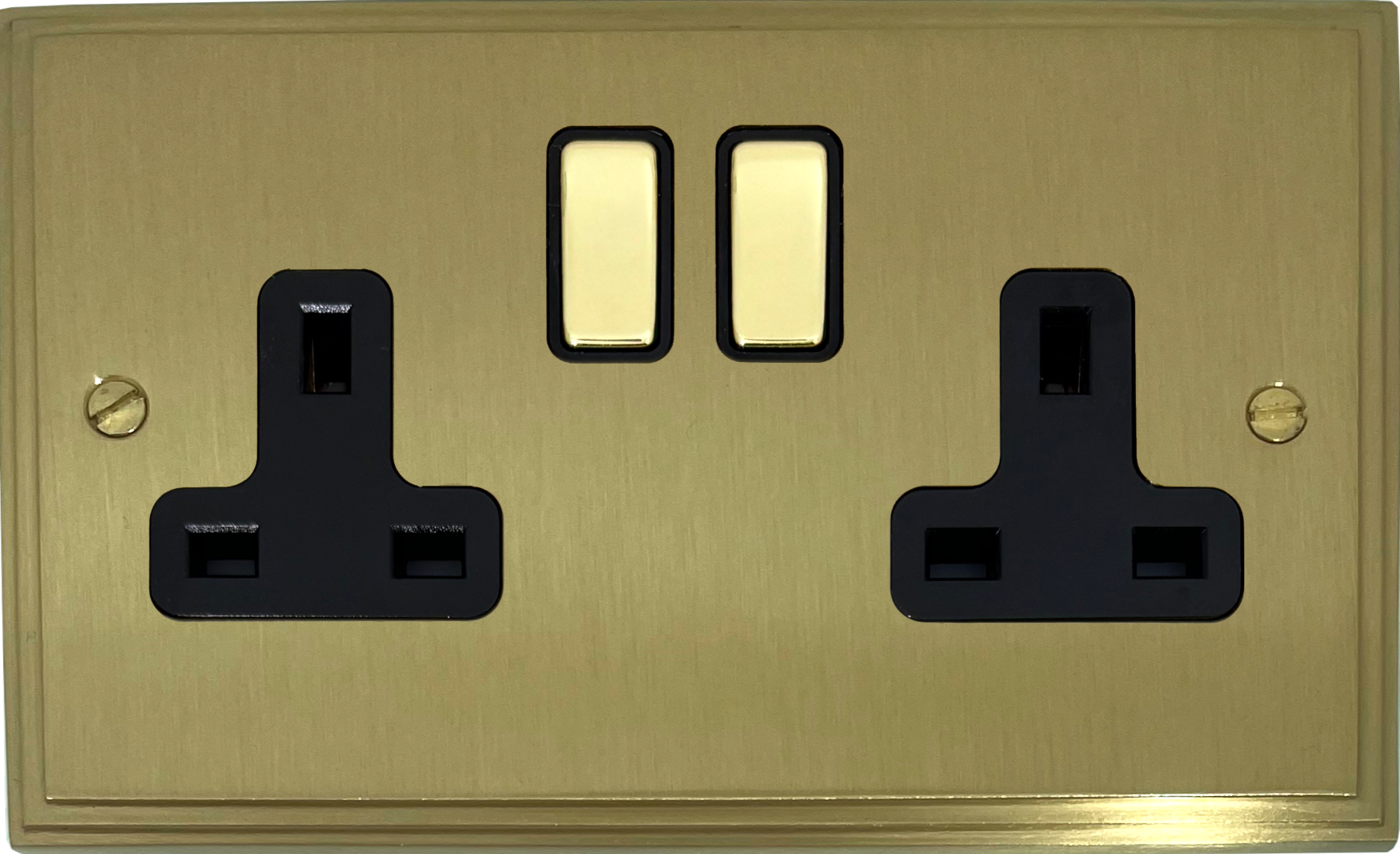 Victorian Cast Satin Brass Double Socket (Brass Switches/Black Inserts) - G+H VSB310