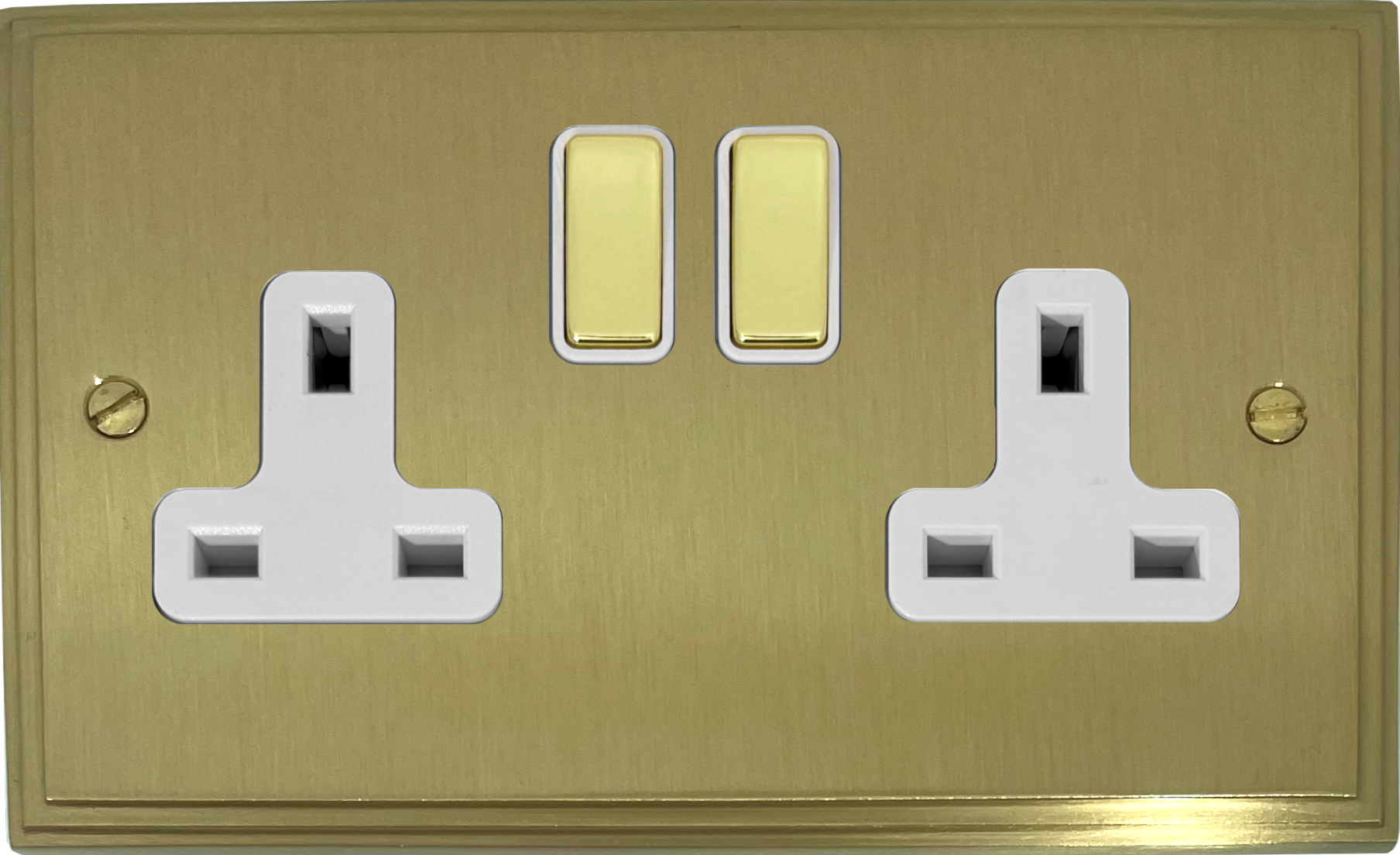 Victorian Cast Satin Brass Double Socket (Brass Switches/White Inserts) - G+H VSB210