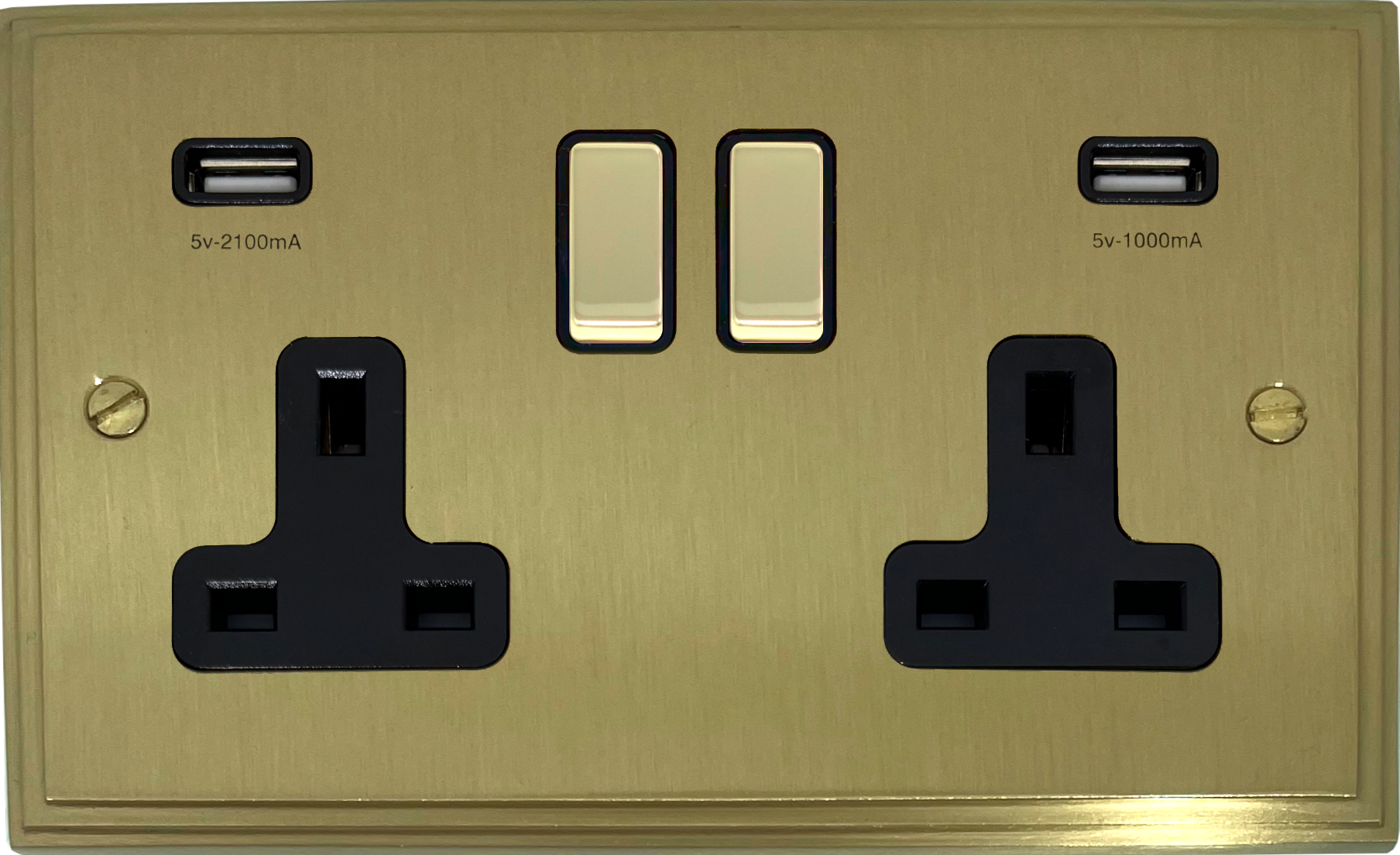 Victorian Cast Satin Brass Double Socket with USB (Brass Switches/Black Inserts) - G+H VSB3910