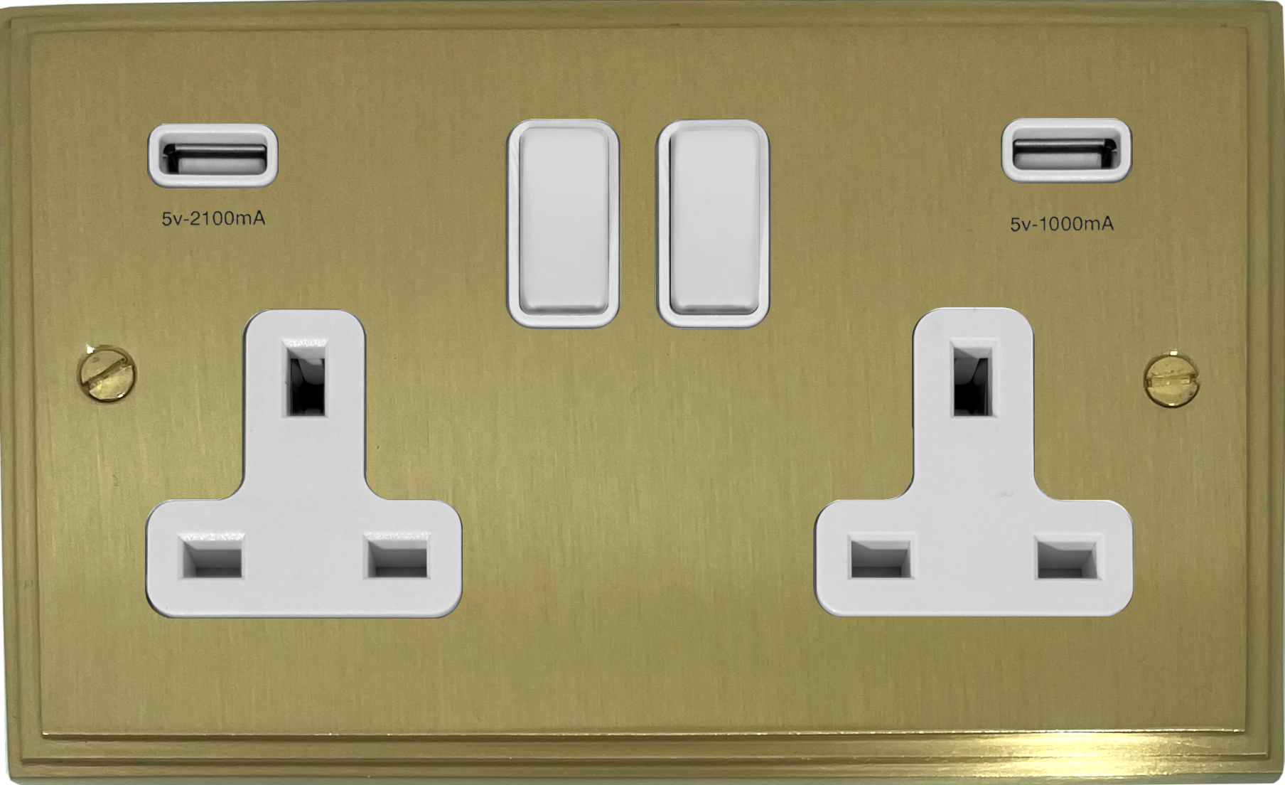 Victorian Cast Satin Brass Double Socket with USB (White Switches) - G+H VSB910W