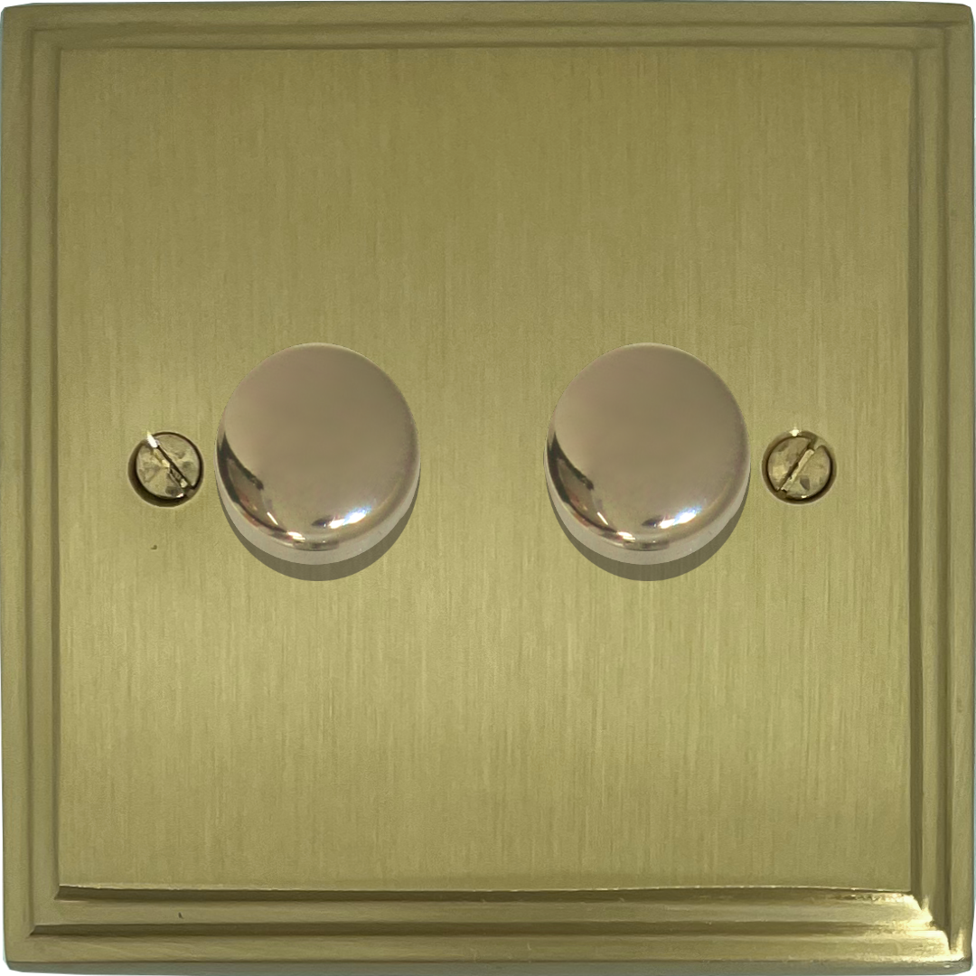 Victorian Cast Satin Brass LED Dimmer (2 Gang)