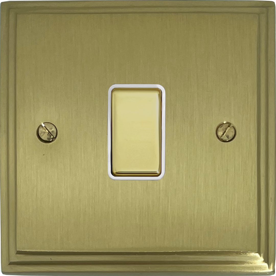 Victorian Cast Satin Brass Light Switch (1 Gang/Brass Switch/White Inserts)