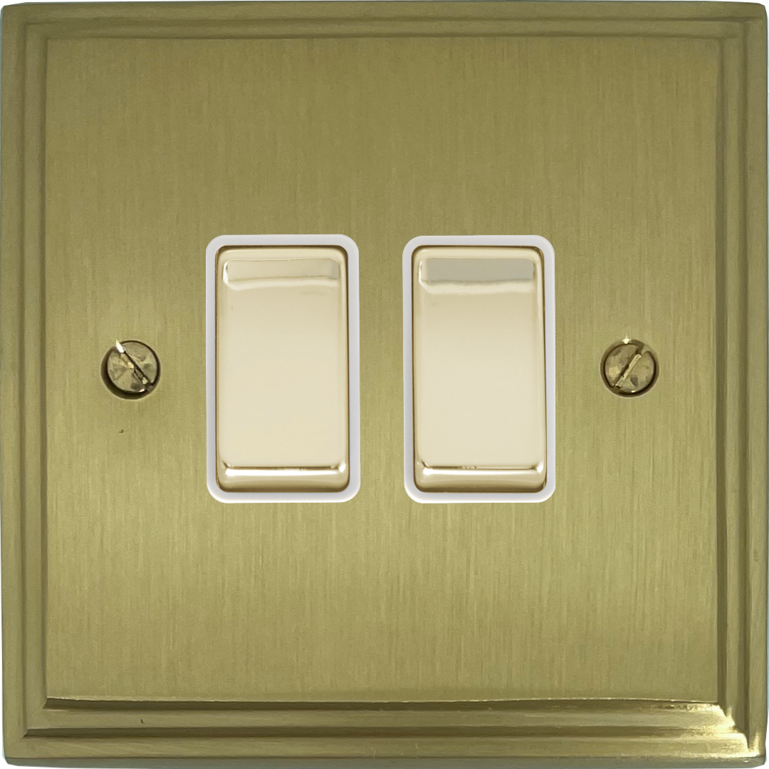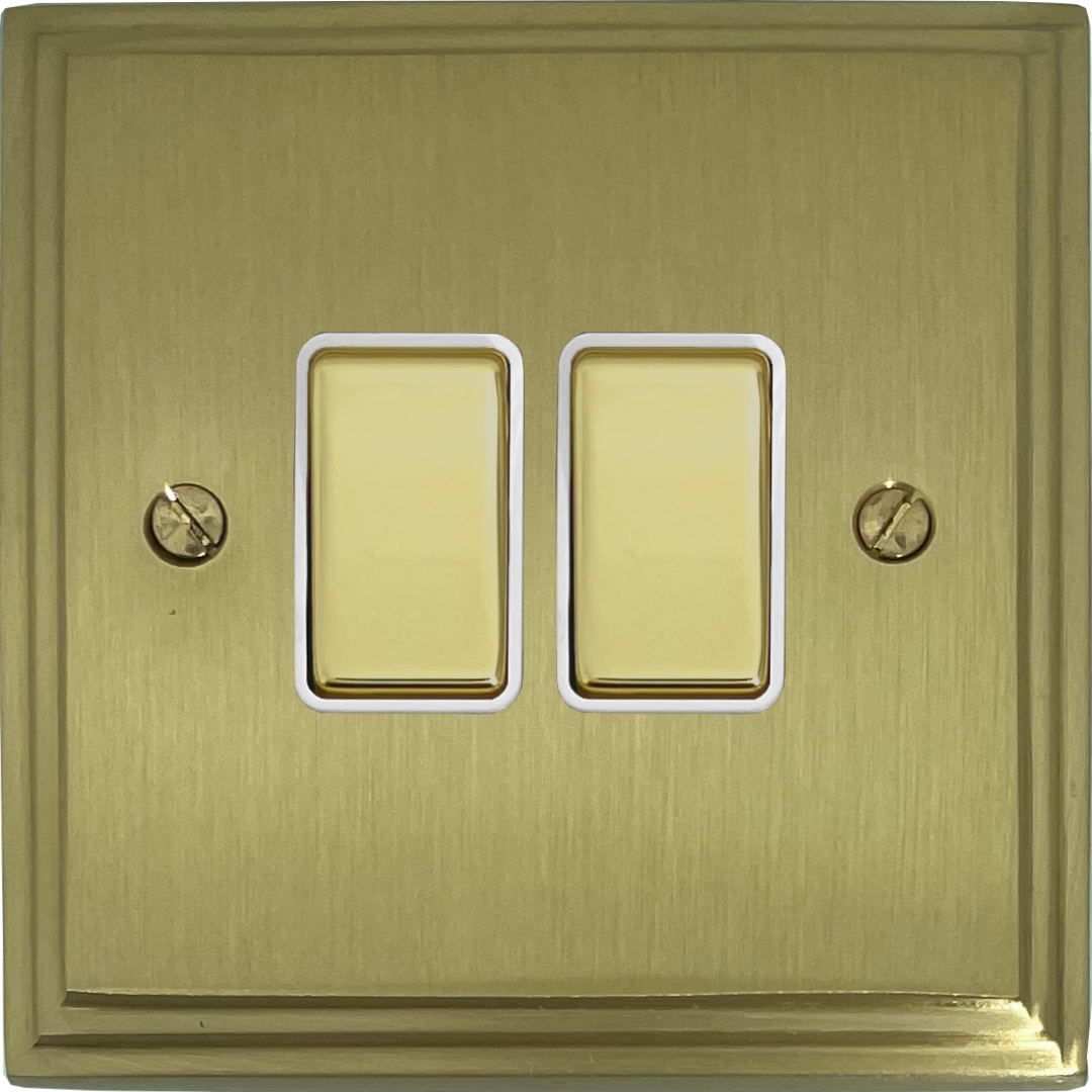 Victorian Cast Satin Brass Light Switch (2 Gang/Brass Switches/White Inserts) - G+H VSB202