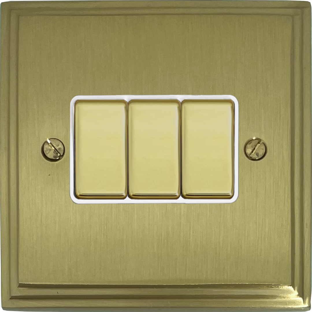 Victorian Cast Satin Brass Light Switch (3 Gang/Brass Switches/White Inserts)