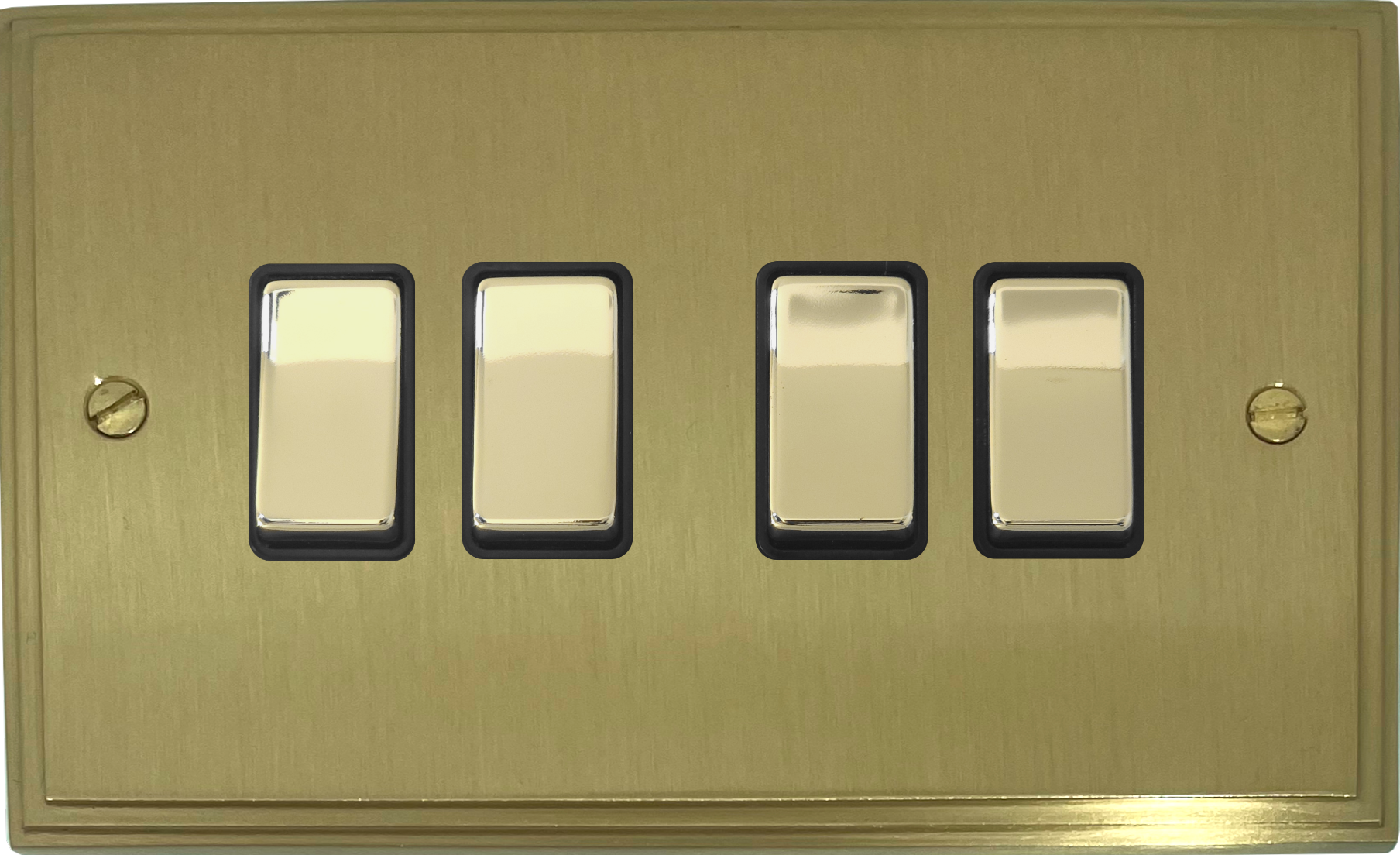 Victorian Cast Satin Brass Light Switch (4 Gang/Brass Switches/Black Inserts) - G+H VSB304