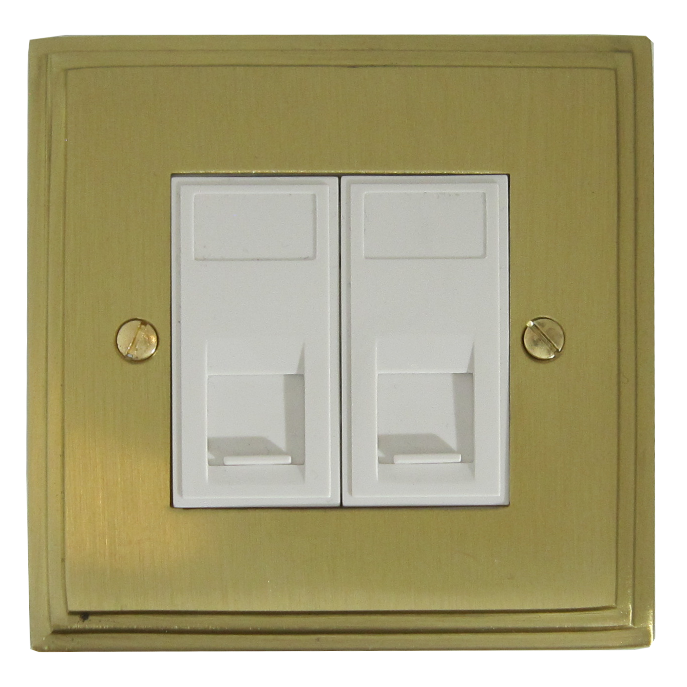 Victorian Cast Satin Brass RJ45 Socket (2 Gang/White Insert) - G+H VSB62W