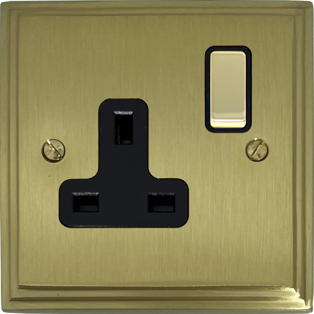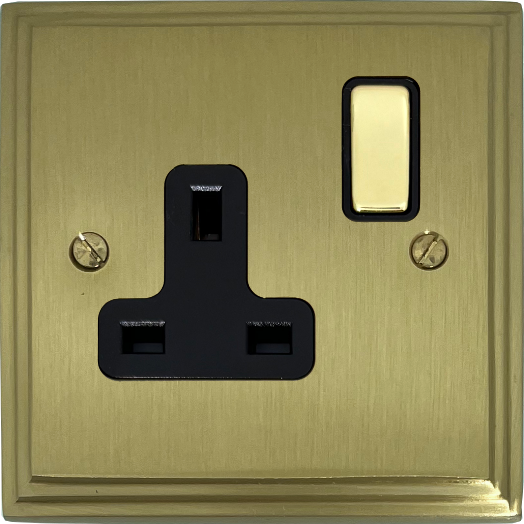 Victorian Cast Satin Brass Single Socket (Brass Switch/Black Inserts) - G+H VSB309