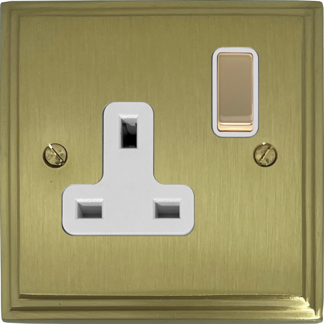Victorian Cast Satin Brass Single Socket (Brass Switch/White Inserts) - G+H VSB209
