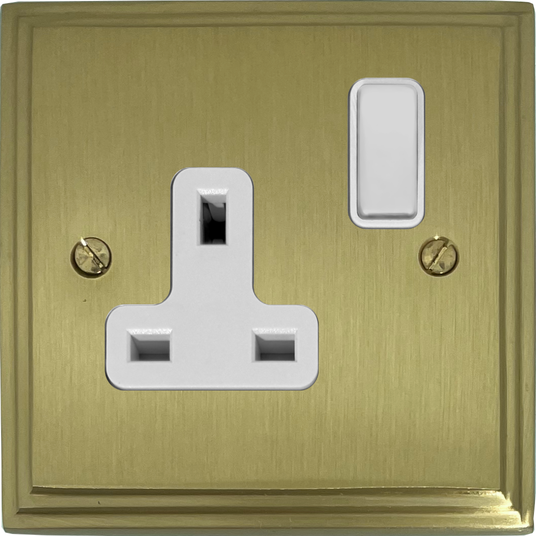 Victorian Cast Satin Brass Single Socket (White Switch) - G+H VSB9W