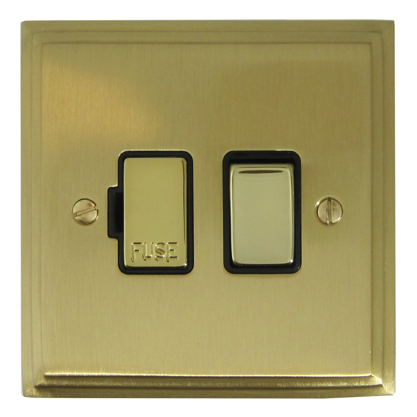 Victorian Cast Satin Brass Switched Fused Spur (Brass Switch/Black Inserts) - G+H VSB357
