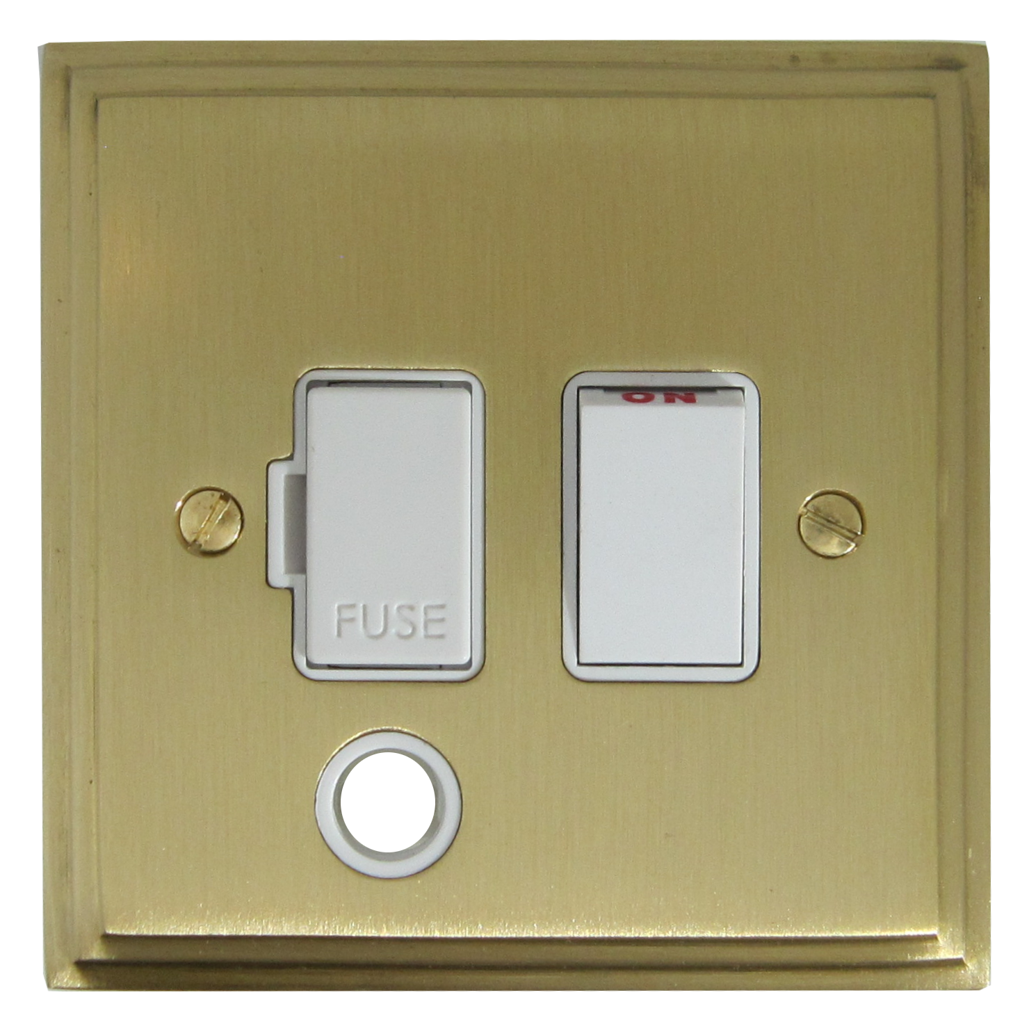 Victorian Cast Satin Brass Switched Fused Spur with Flex Outlet (White Switch) - G+H VSB56W