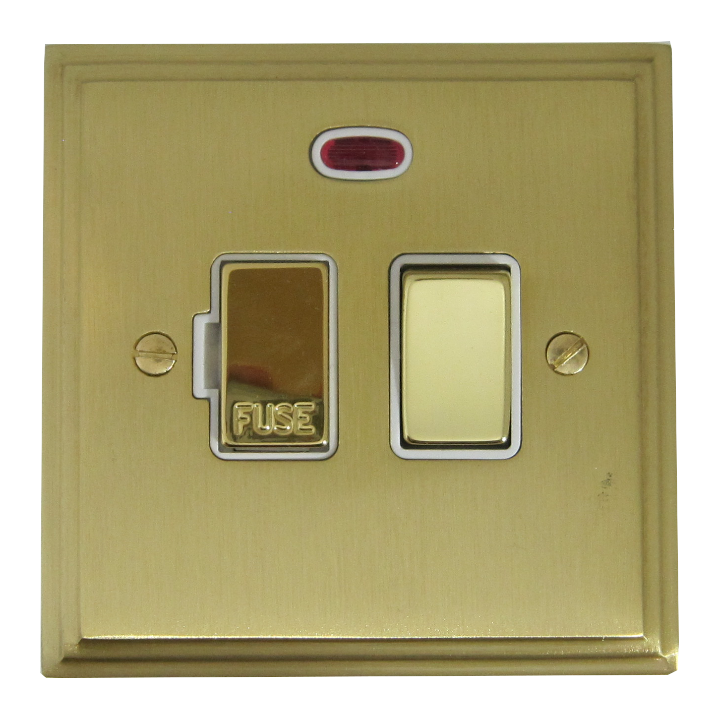 Victorian Cast Satin Brass Switched Fused Spur with Neon (Brass Switch/White Inserts) - G+H VSB227