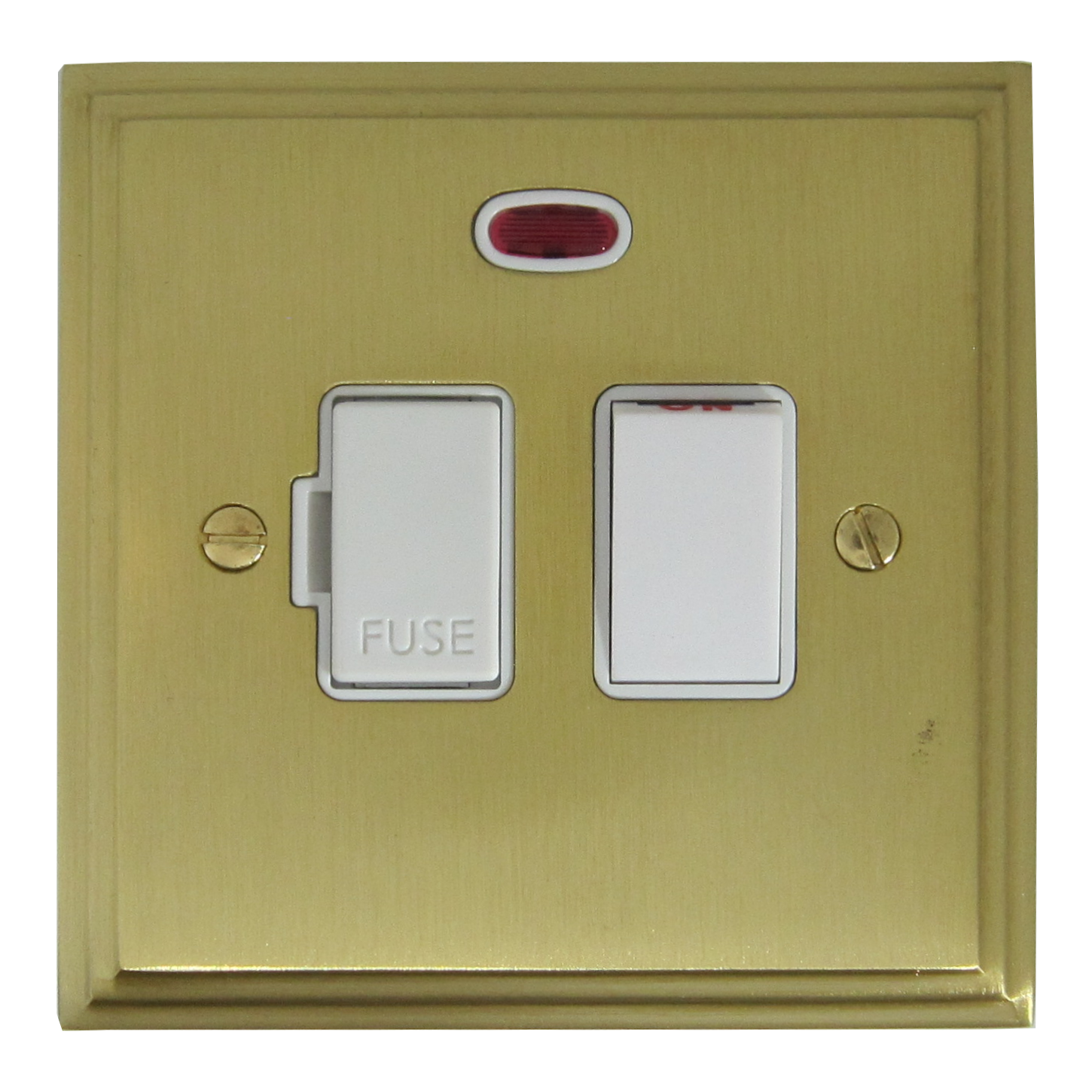 Victorian Cast Satin Brass Switched Fused Spur with Neon (White Switch) - G+H VSB27W
