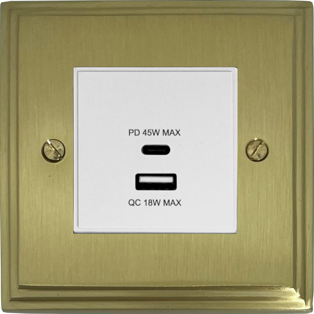 Victorian Cast Satin Brass USB Charger (Dual USB A + C Quick Charge) (1 Gang/White Insert) - G+H VSB43W