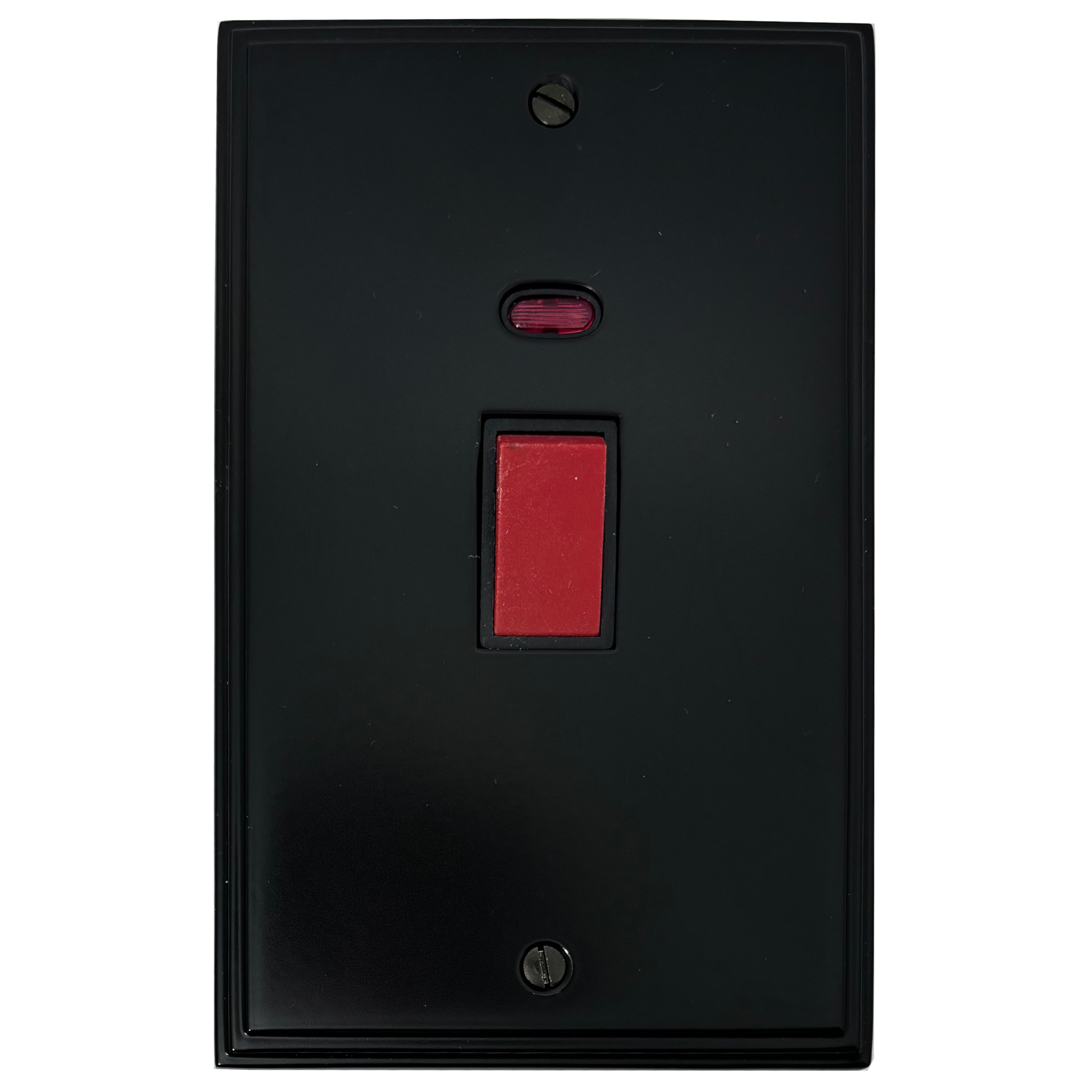 Victorian Matt Black 45A DP Switch with Neon (Vertical Plate)