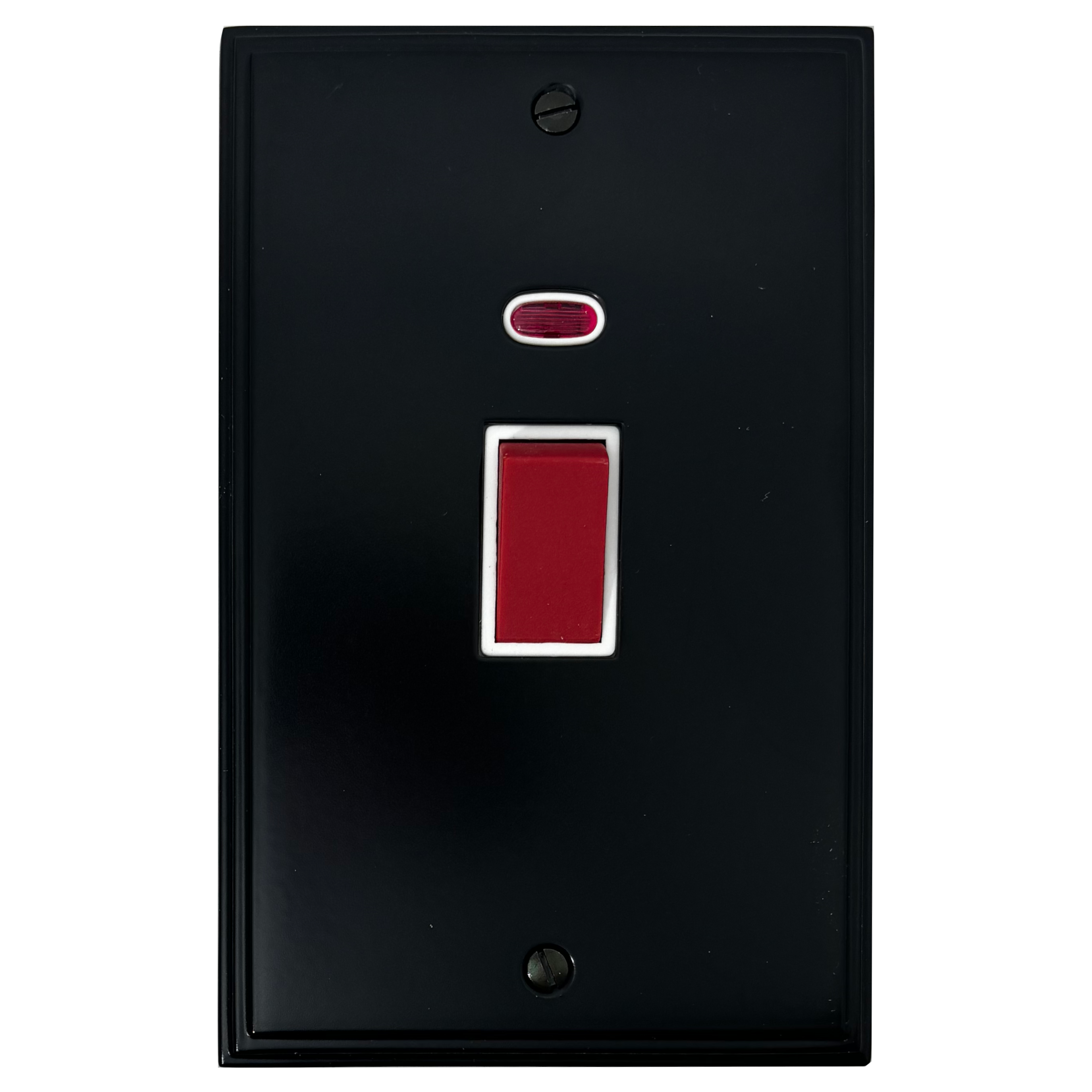 Victorian Matt Black 45A DP Switch with Neon (Vertical Plate/White Insert)