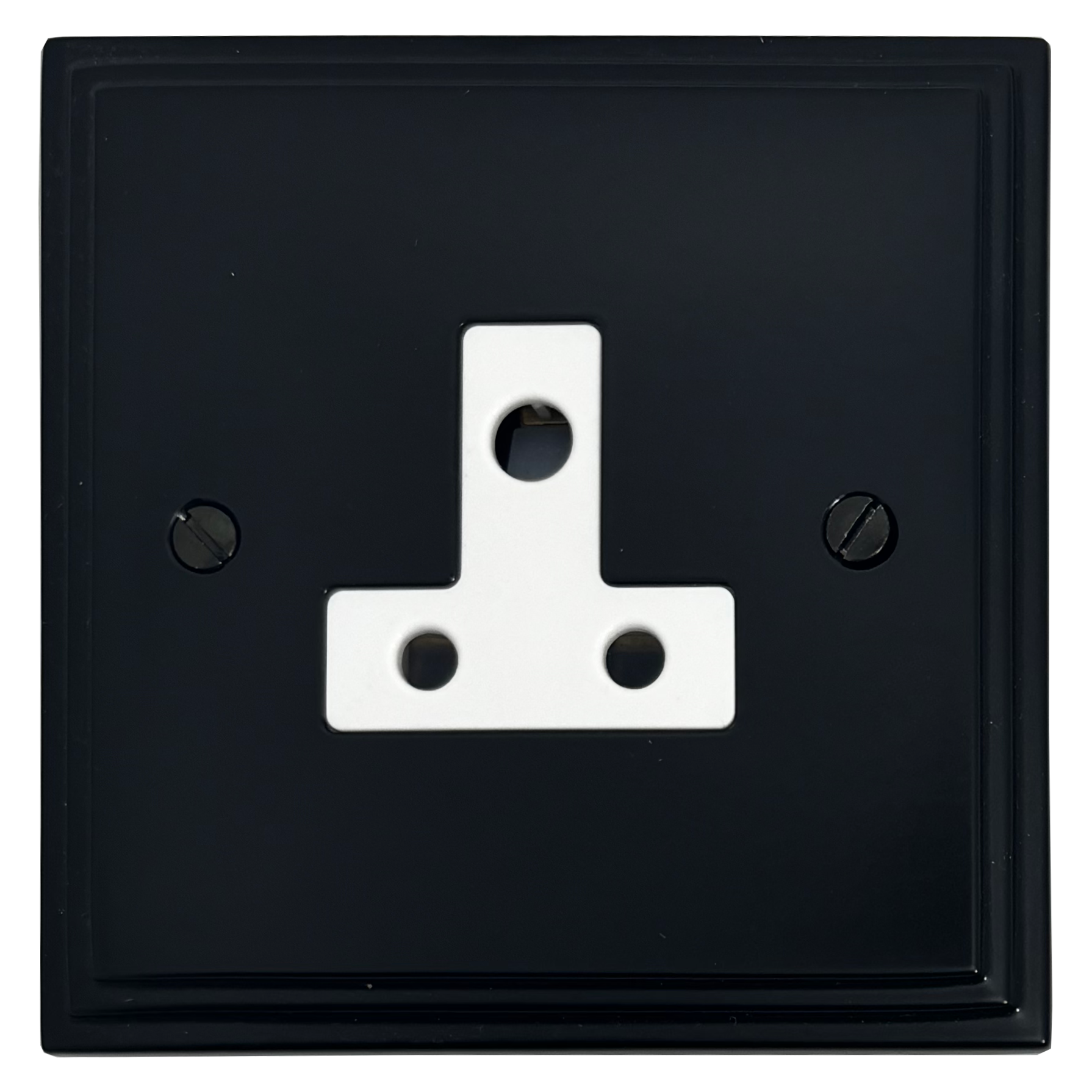Victorian Matt Black 5A 3 Pin Socket (White Inserts)