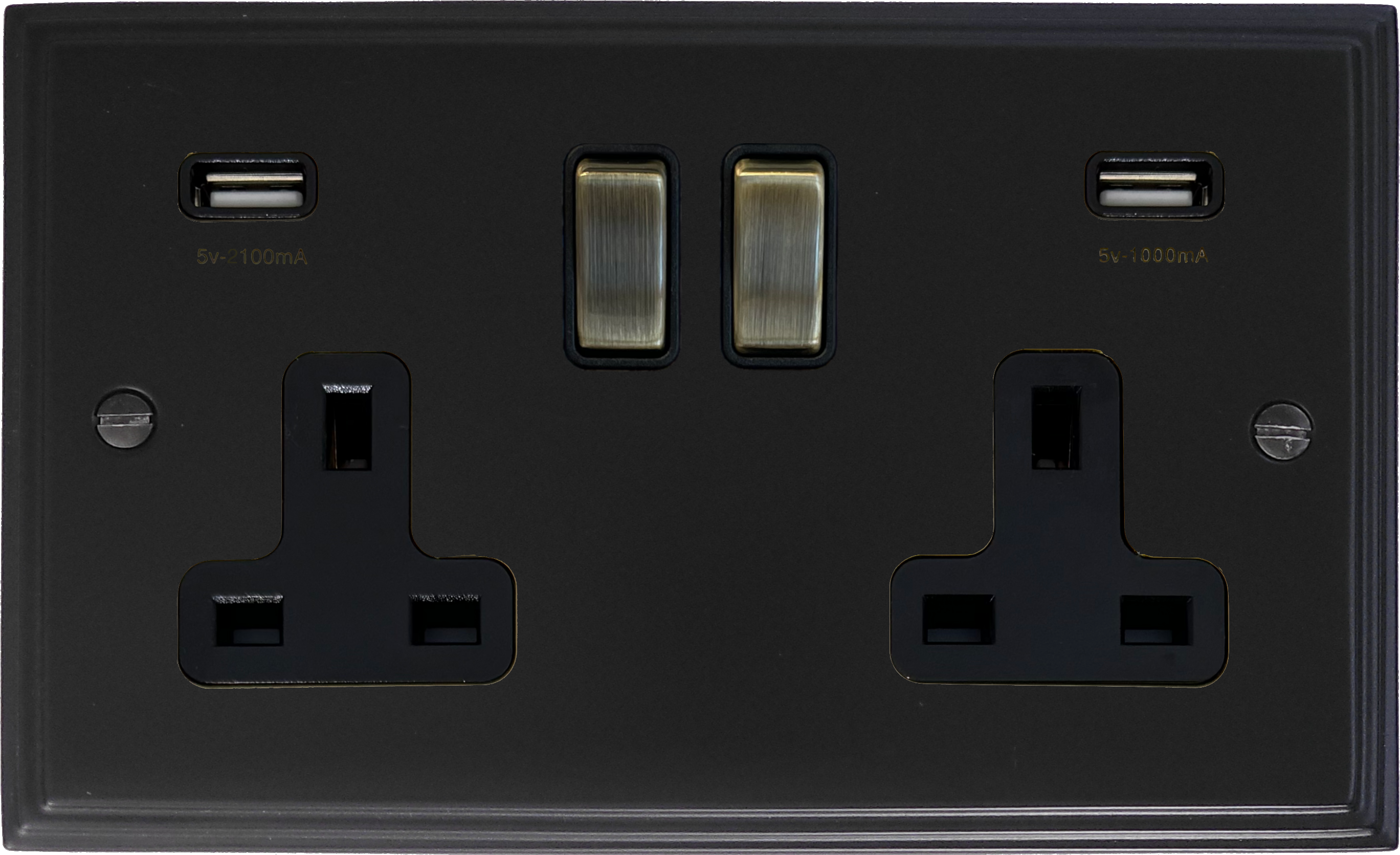 Victorian Matt Black Double Socket with USB (Antique Brass Switches) - G+H VFB3910-AB