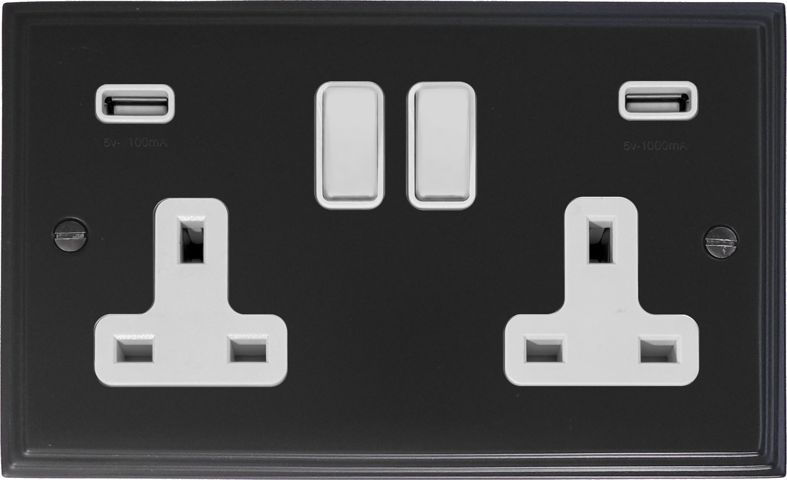 Victorian Matt Black Double Socket with USB (White Inserts) - G+H VFB910W