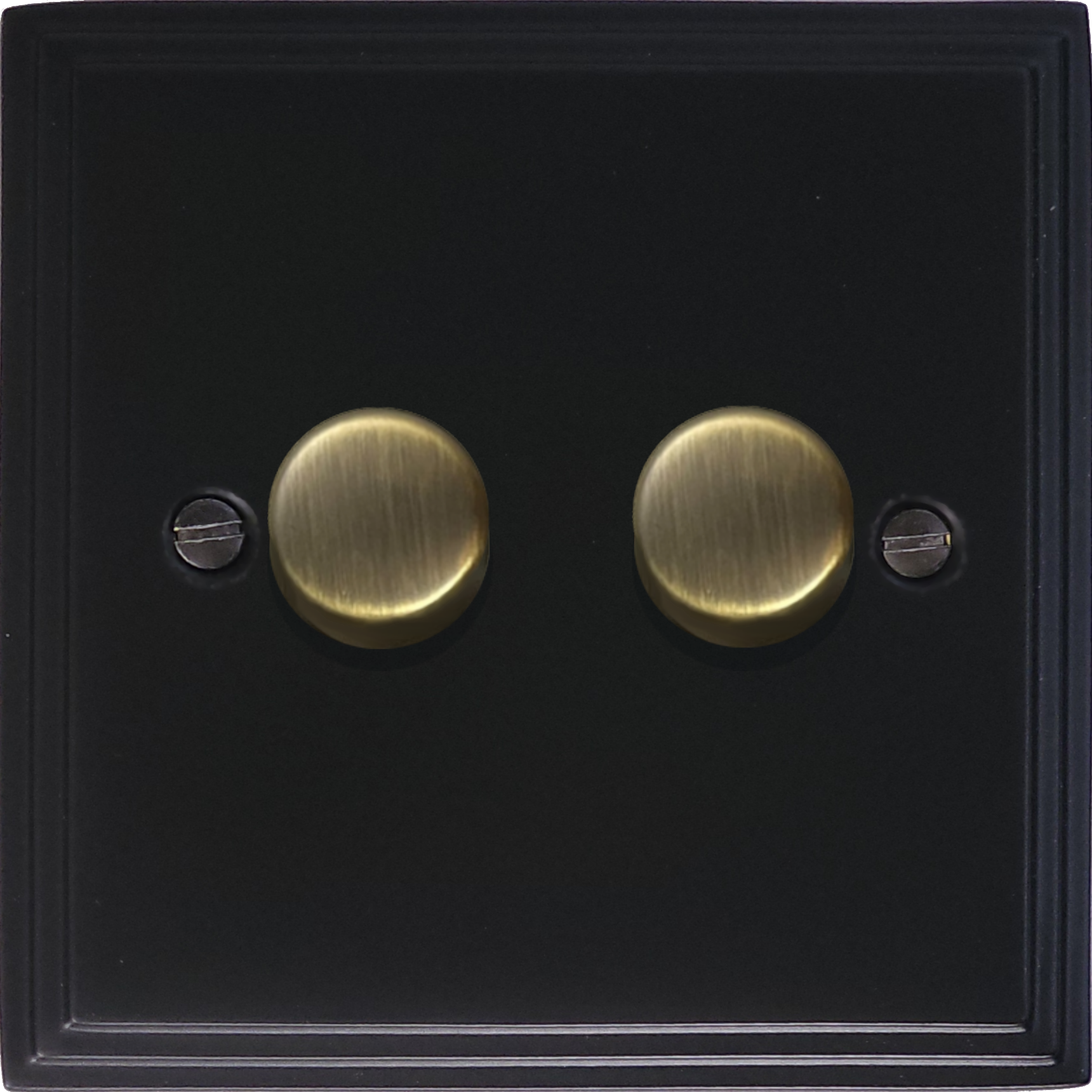 Victorian Matt Black LED Dimmer (2 Gang/Antique Brass Caps) - G+H VFB522-AB