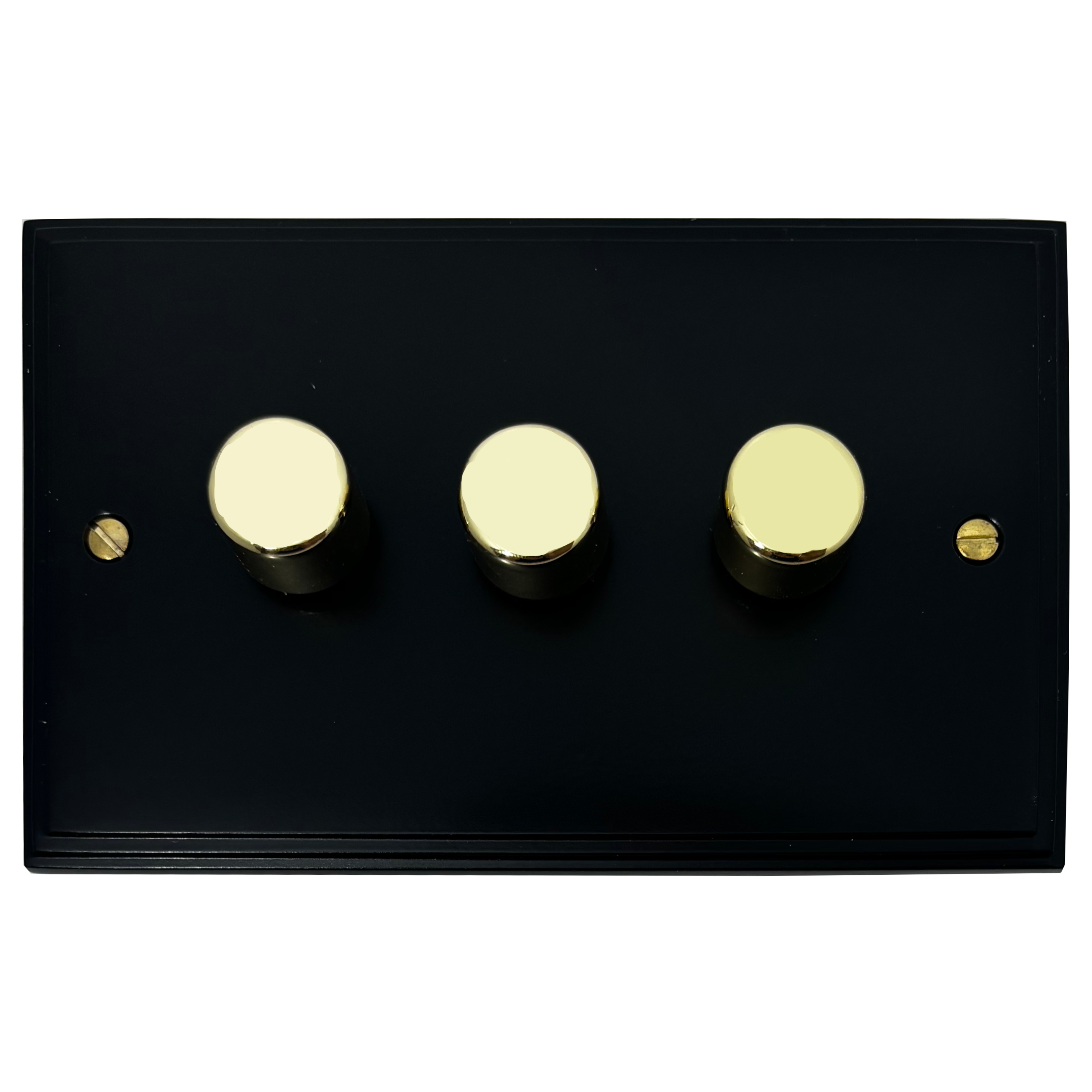Victorian Matt Black LED Dimmer (3 Gang/Polished Brass Caps) - G+H VFB523-PB