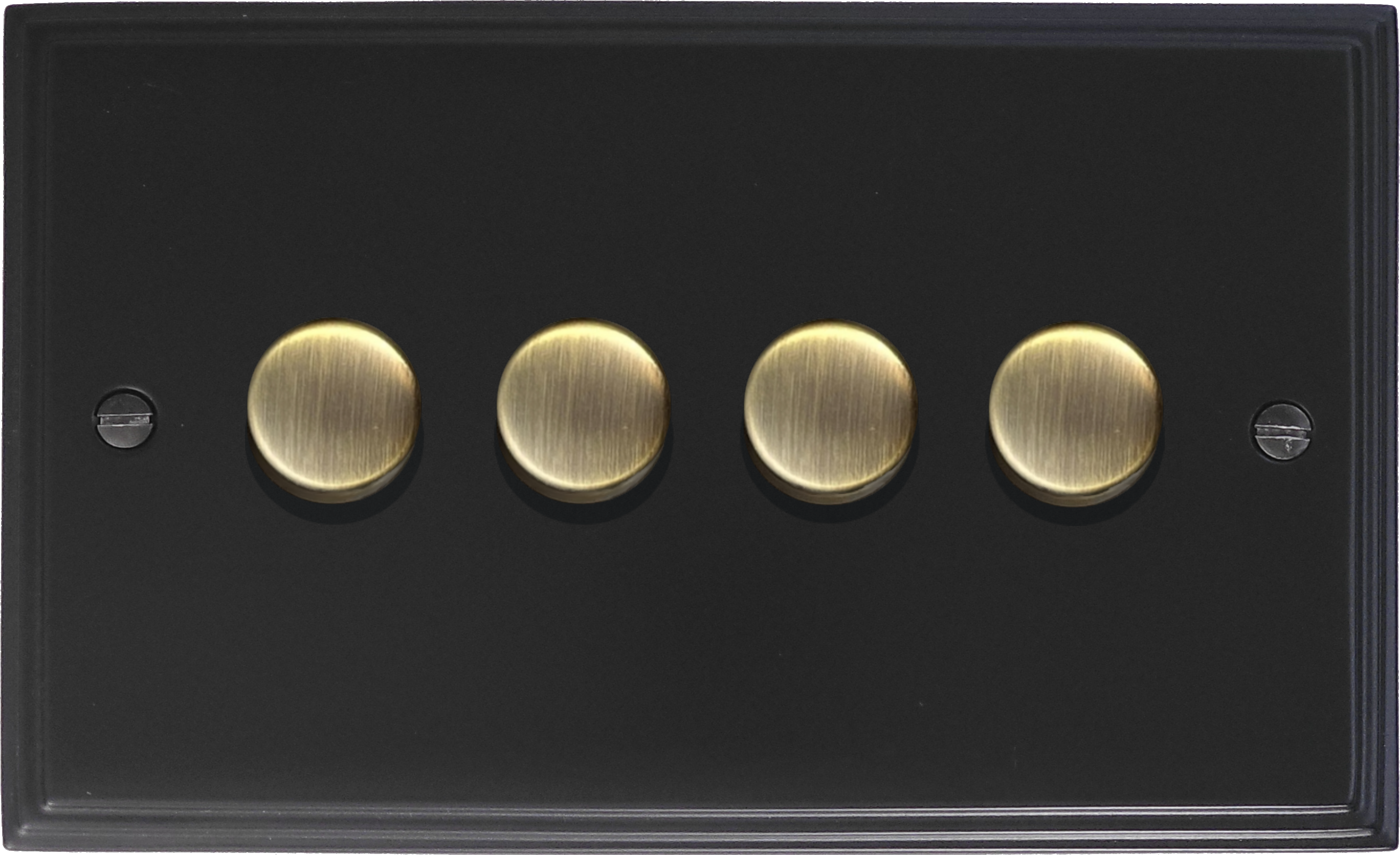 Victorian Matt Black LED Dimmer (4 Gang/Antique Brass Caps) - G+H VFB524-AB