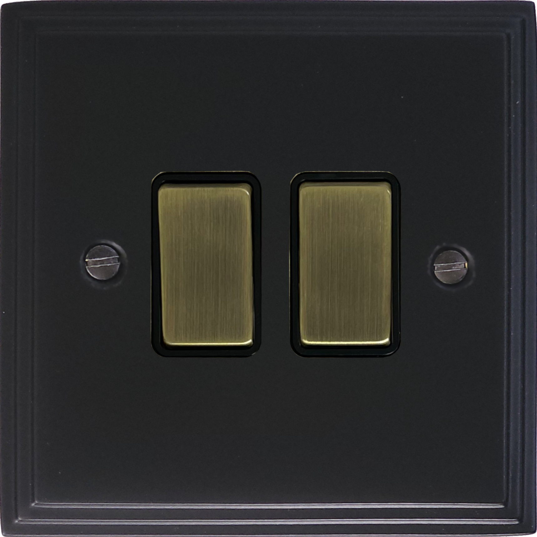 Victorian Matt Black Light Switch (2 Gang/Antique Brass Switches) - G+H VFB302-AB