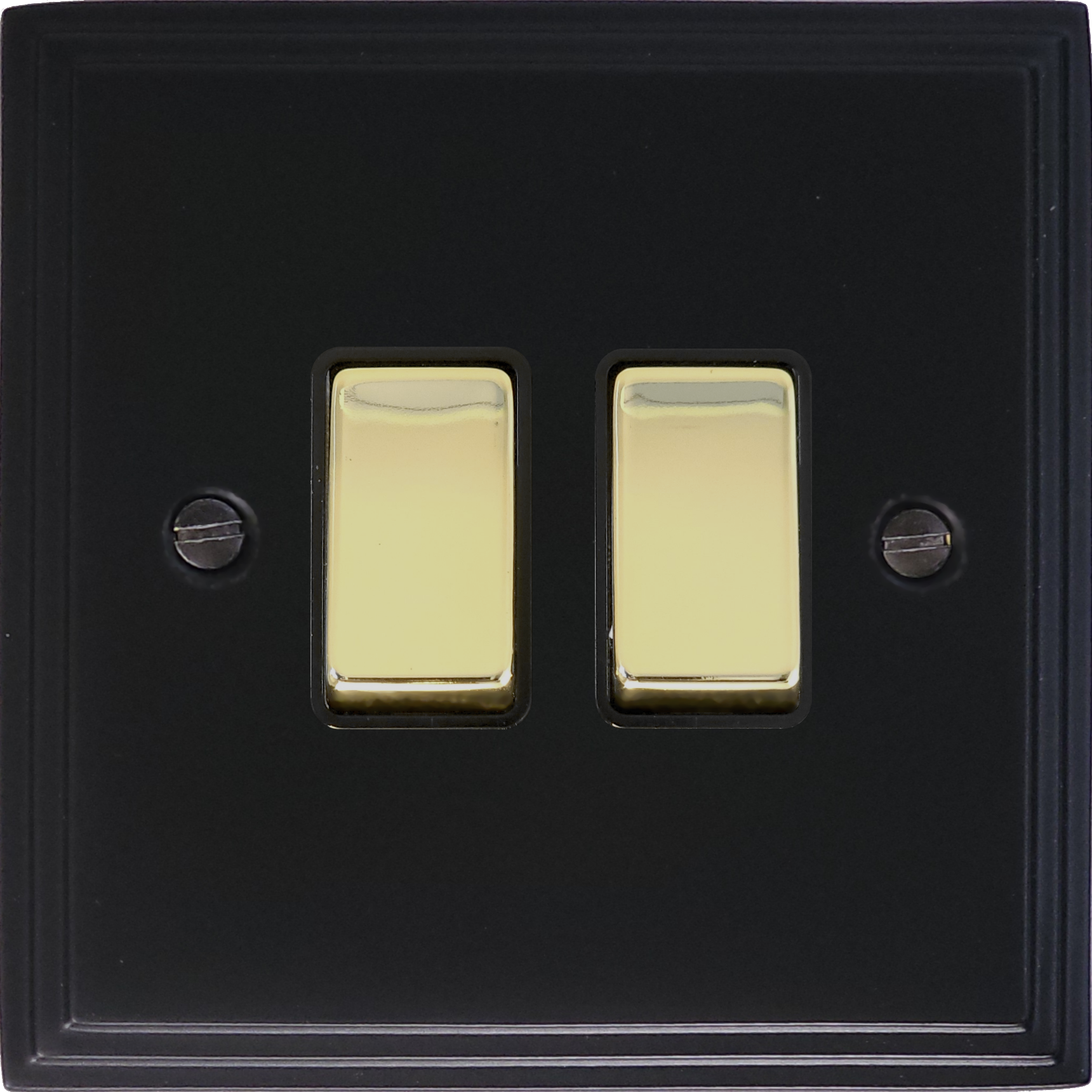 Victorian Matt Black Light Switch (2 Gang/Polished Brass Switches) - G+H VFB302-PB