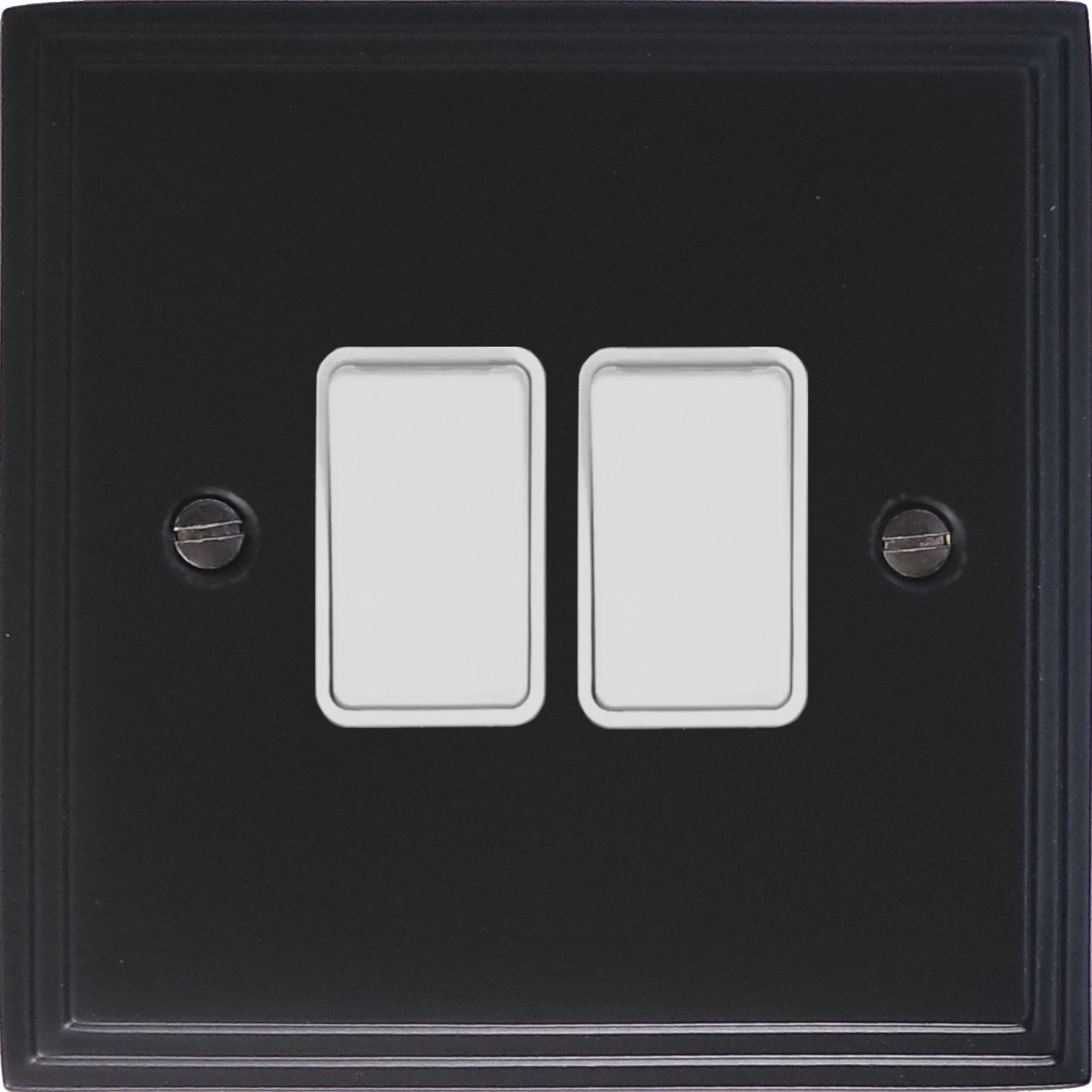 Victorian Matt Black Light Switch (2 Gang/White Switches) - G+H VFB2W