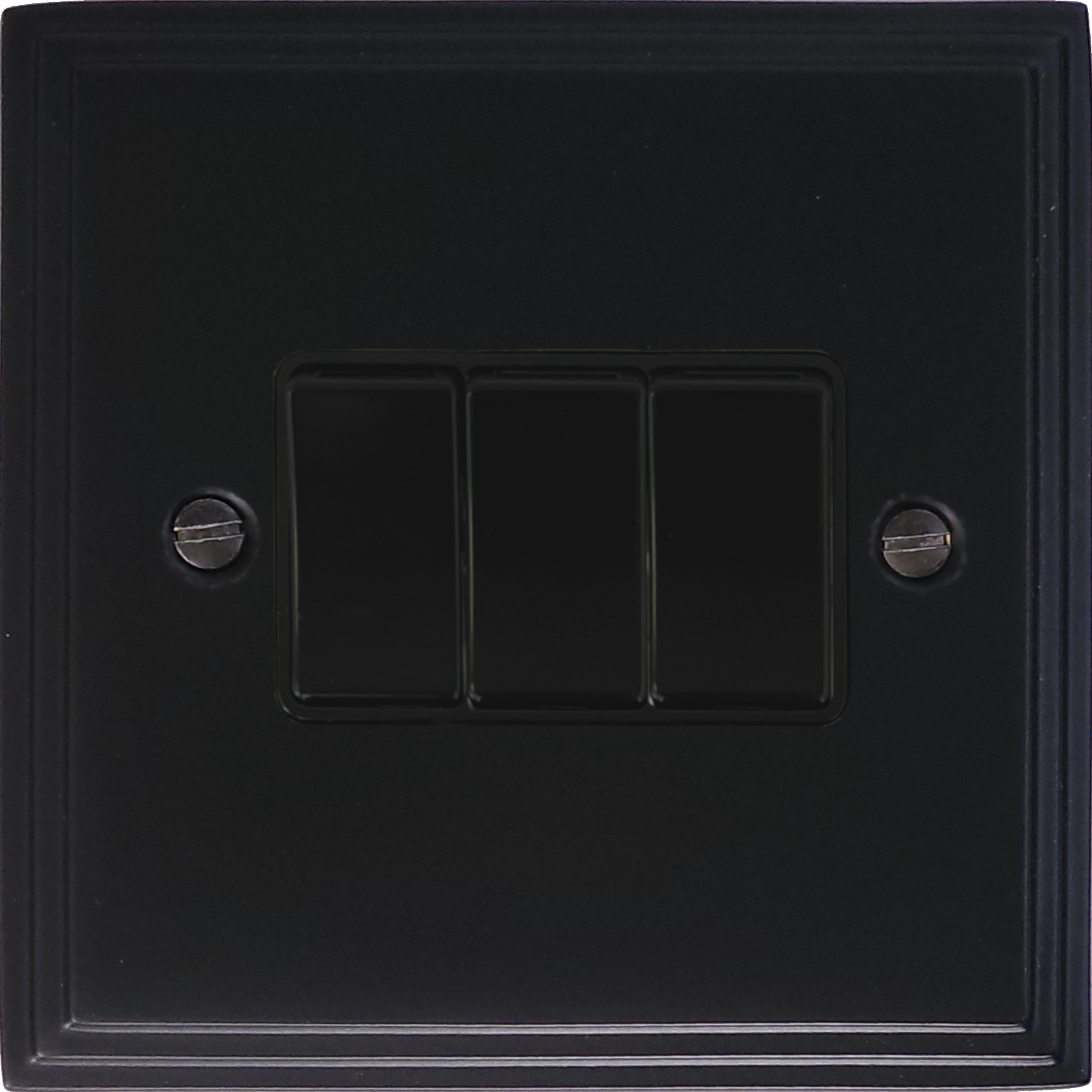 Victorian Matt Black Light Switch (3 Gang) - G+H VFB3B