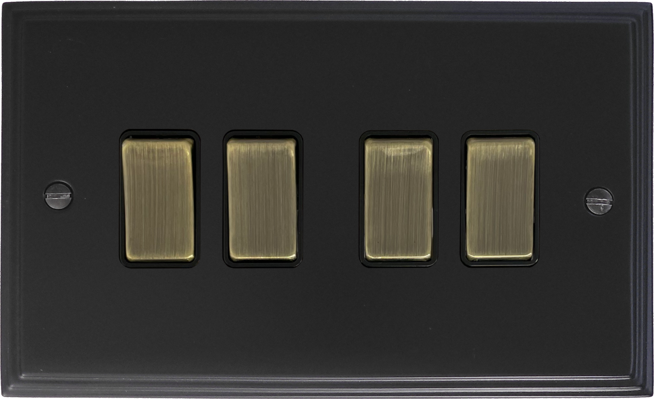 Victorian Matt Black Light Switch (4 Gang/Antique Brass Switches) - G+H VFB304-AB