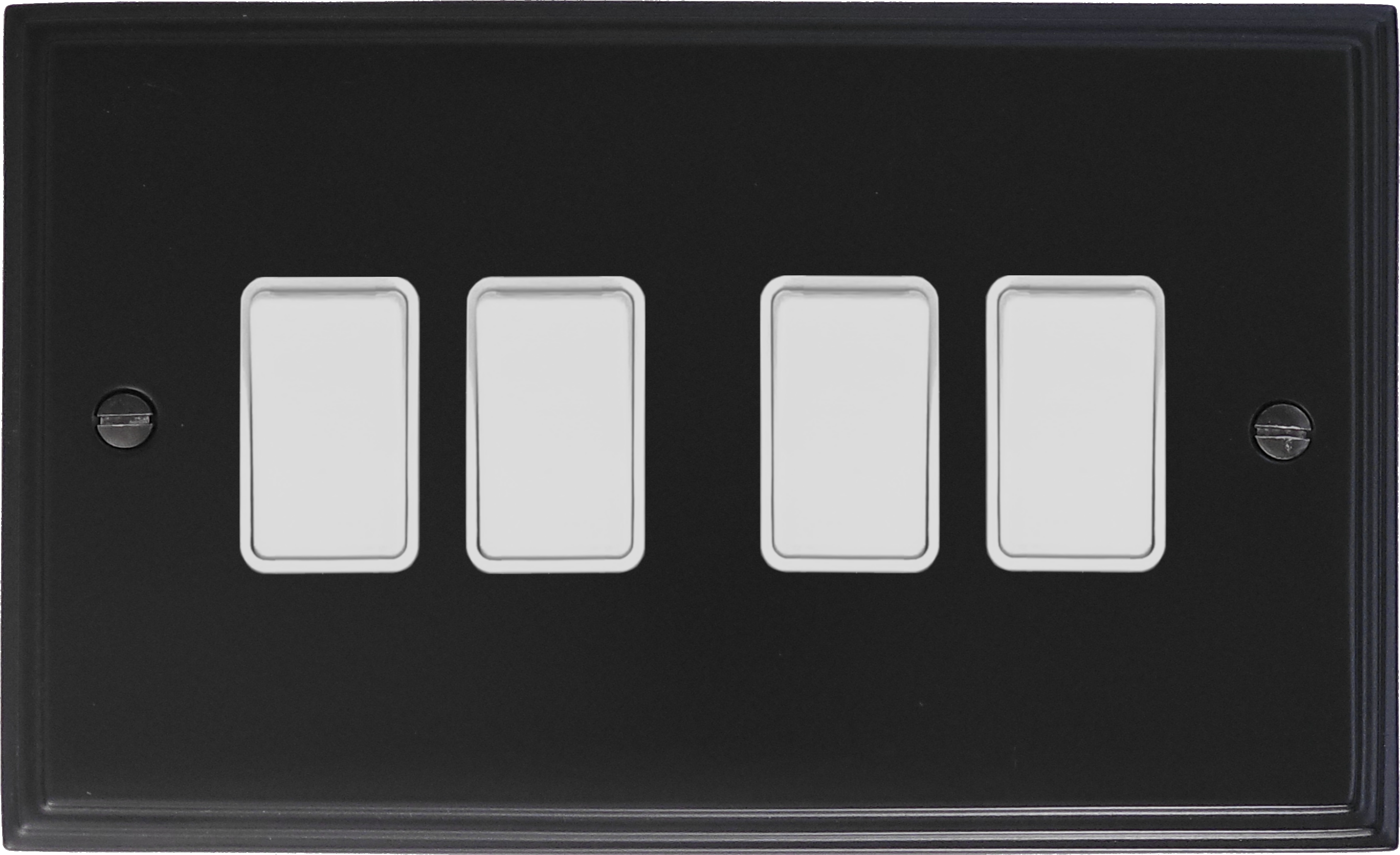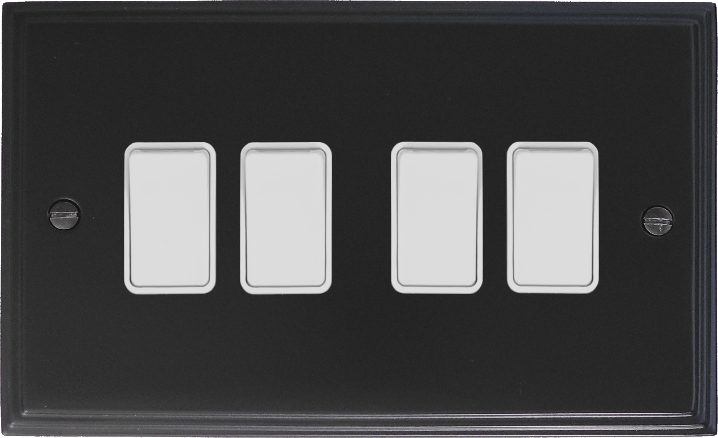Victorian Matt Black Light Switch (4 Gang/White Switches) - G+H VFB4W
