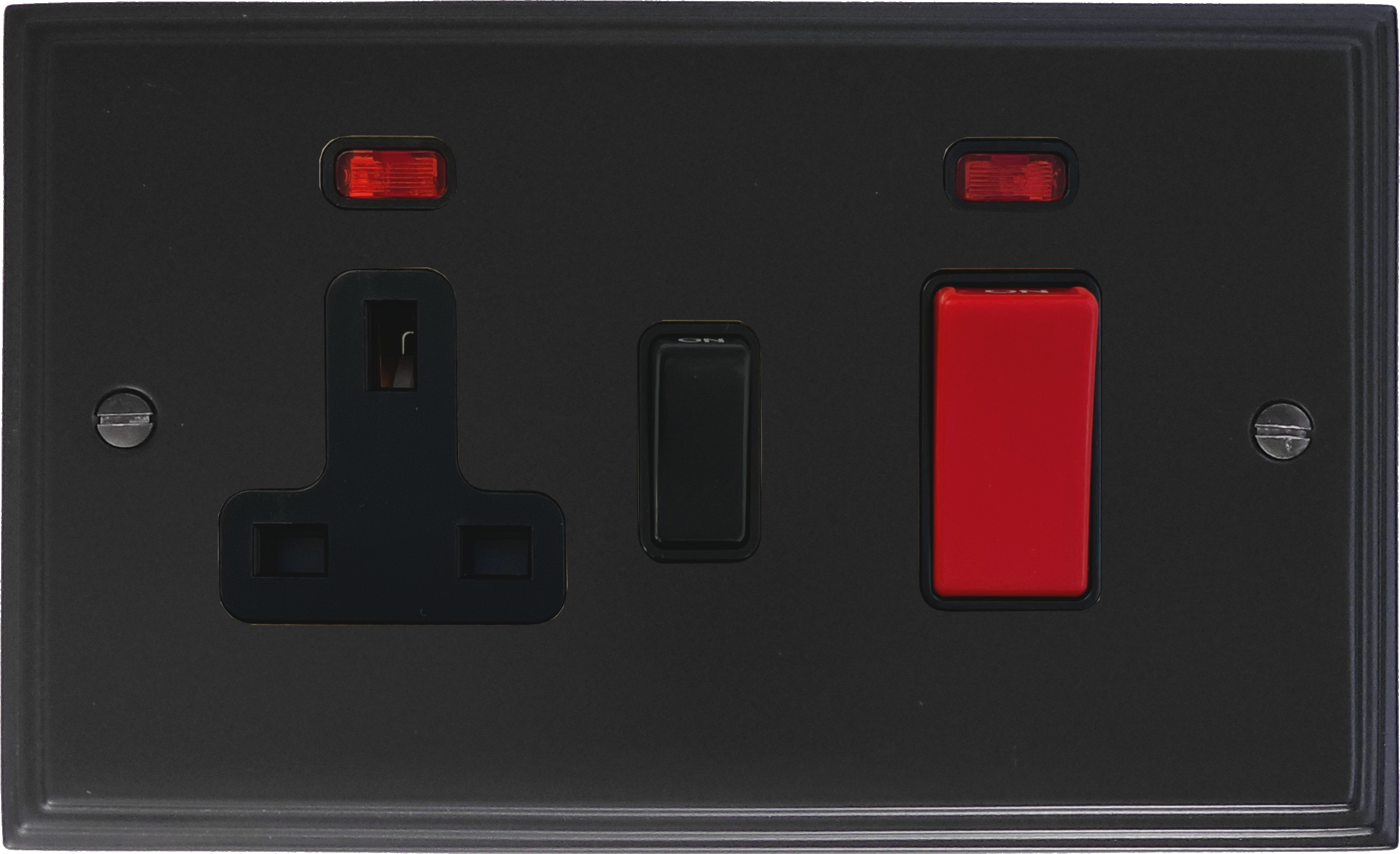Victorian Matt Black Red Cooker Switch with Socket - G+H VFB29B
