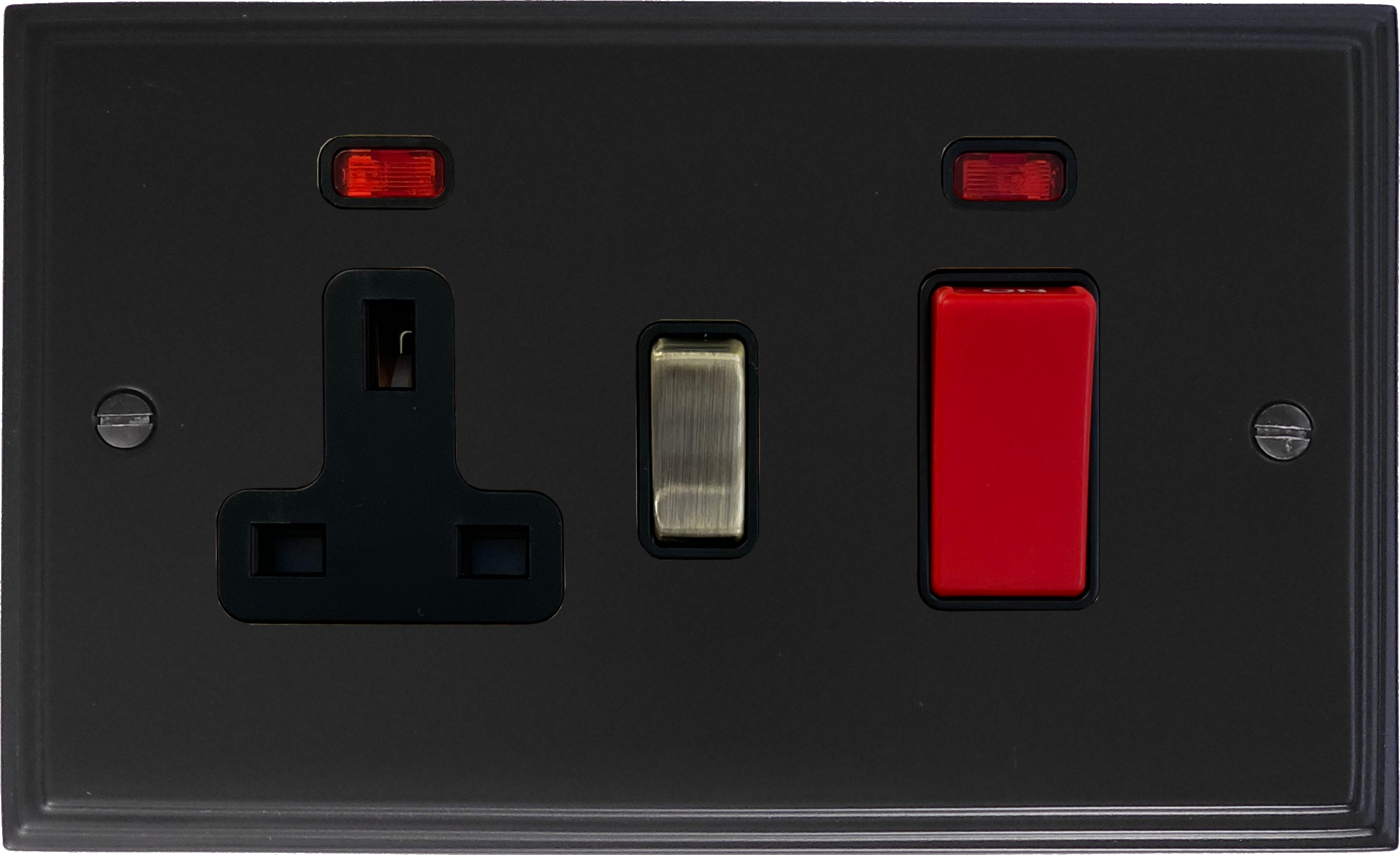 Victorian Matt Black Red Cooker Switch with Socket (Antique Brass Switch)