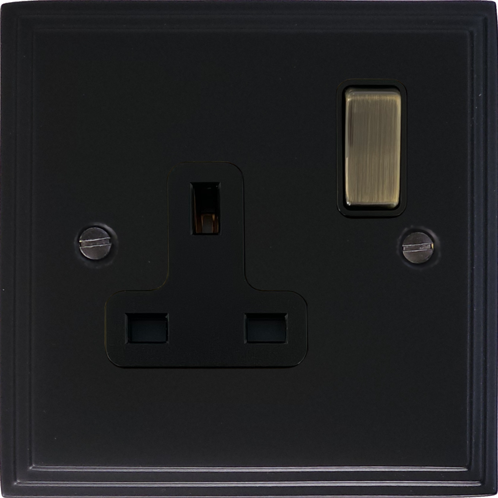 Victorian Matt Black Single Socket (Antique Brass Switch) - G+H VFB309-AB