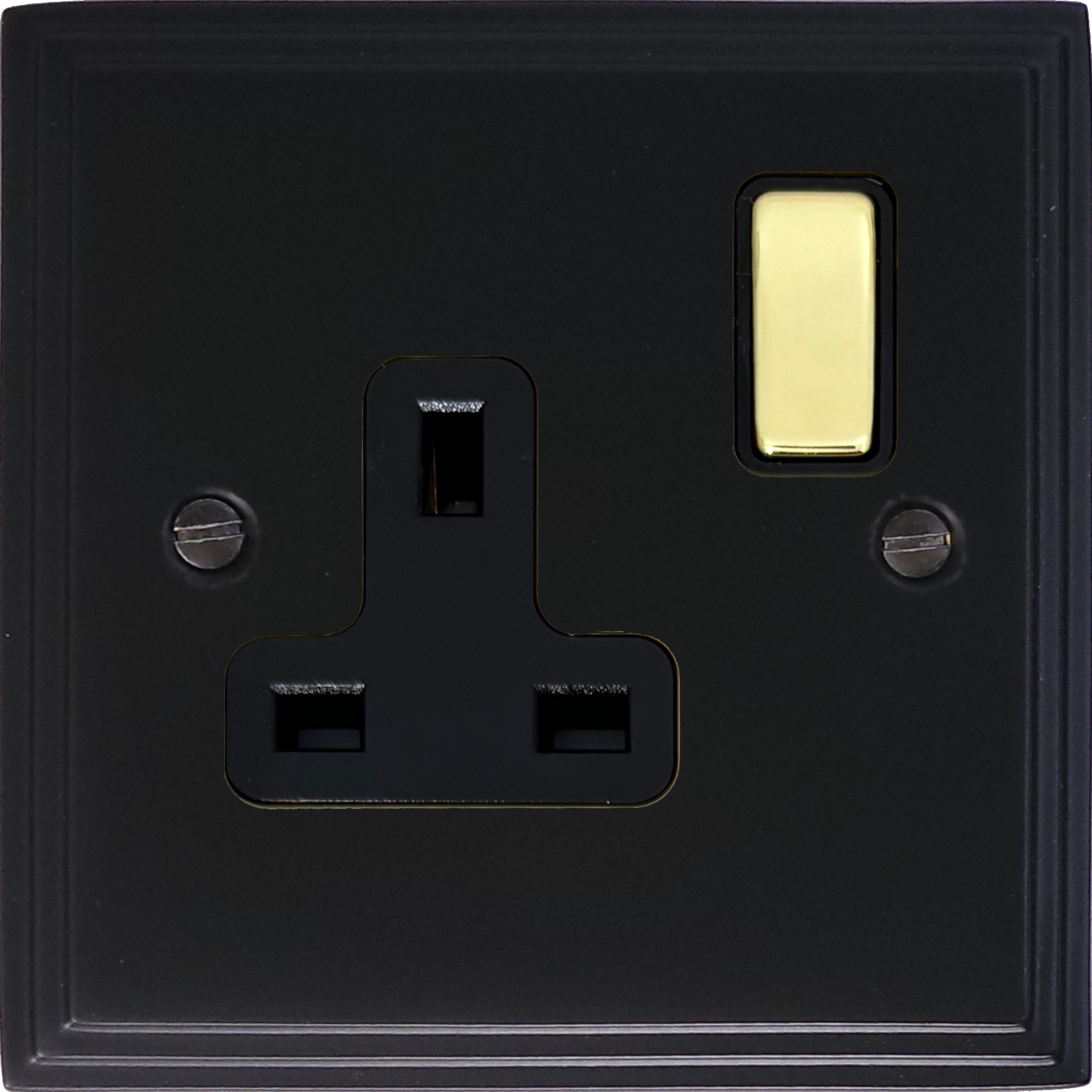 Victorian Matt Black Single Socket (Polished Brass Switch) - G+H VFB309-PB