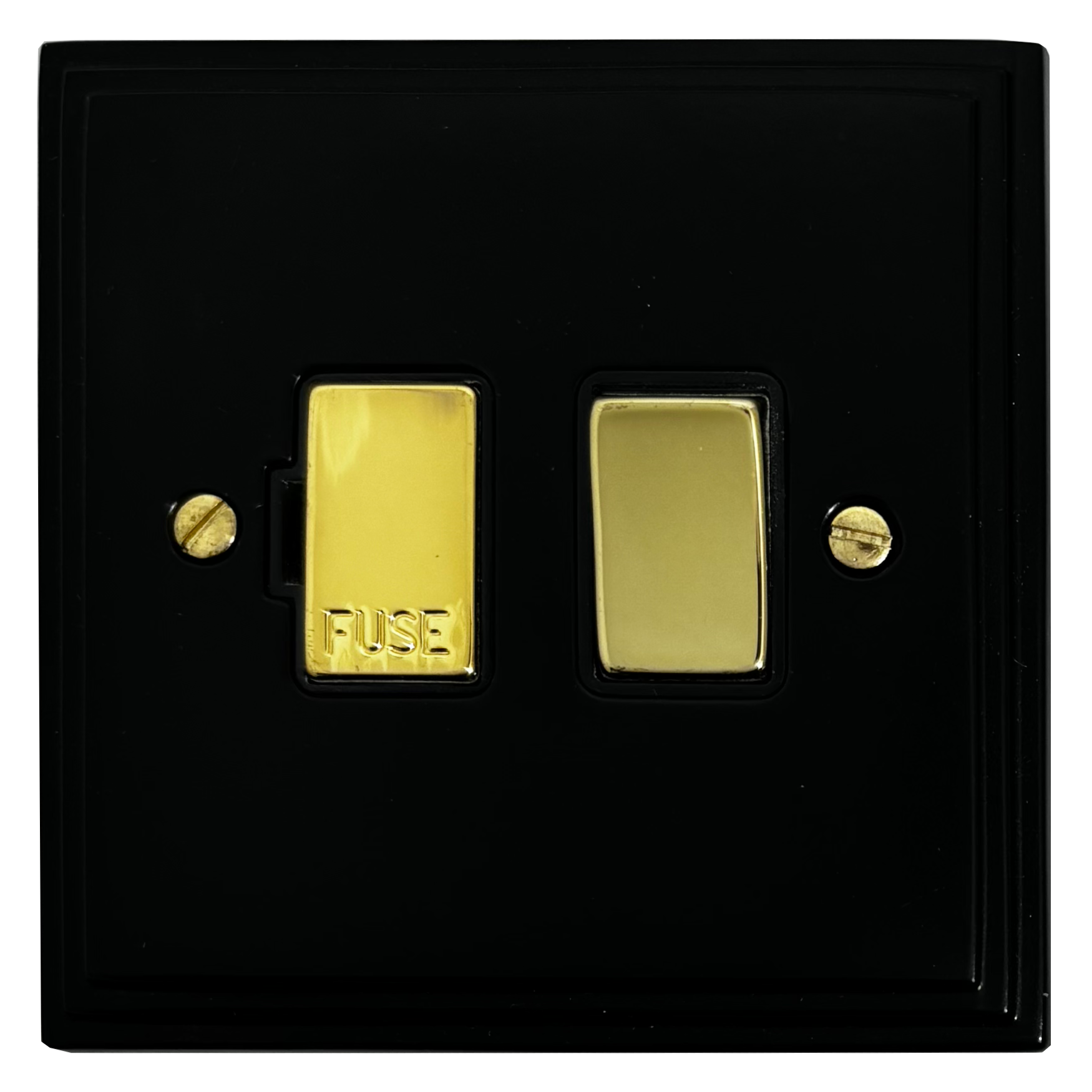 Victorian Matt Black Switched Fused Spur (Black insert/Polished Brass Switch)