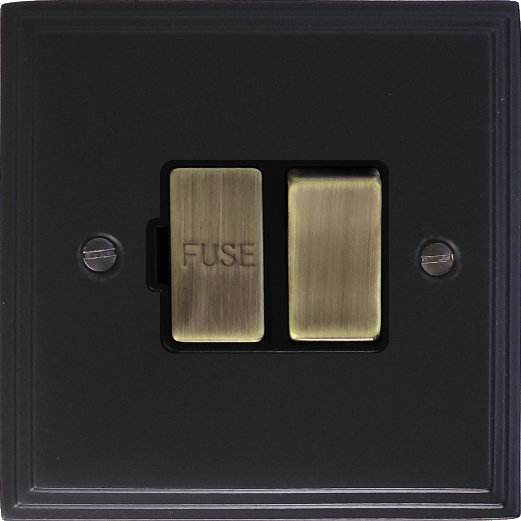 Victorian Matt Black Switched Fused Spur (Black insert/Polished Brass Switch) - G+H VFB357-AB