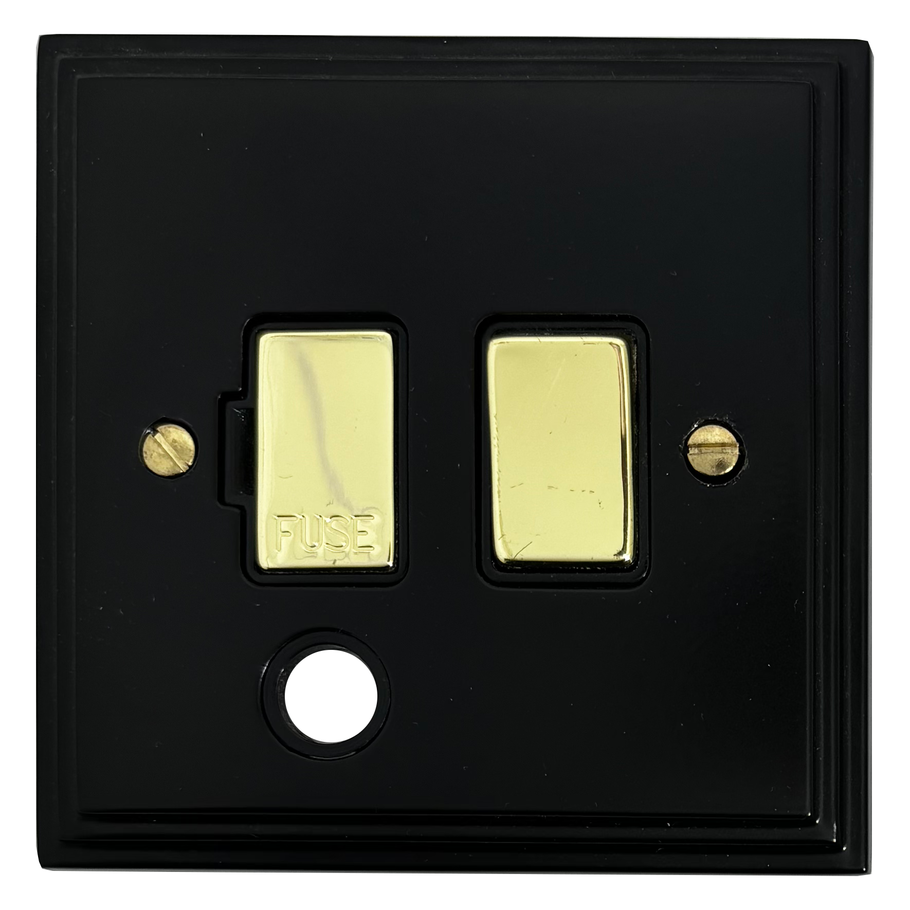 Victorian Matt Black Switched Fused Spur with Flex Outlet (Black insert/Polished Brass Switch) - G+H VFB356-PB