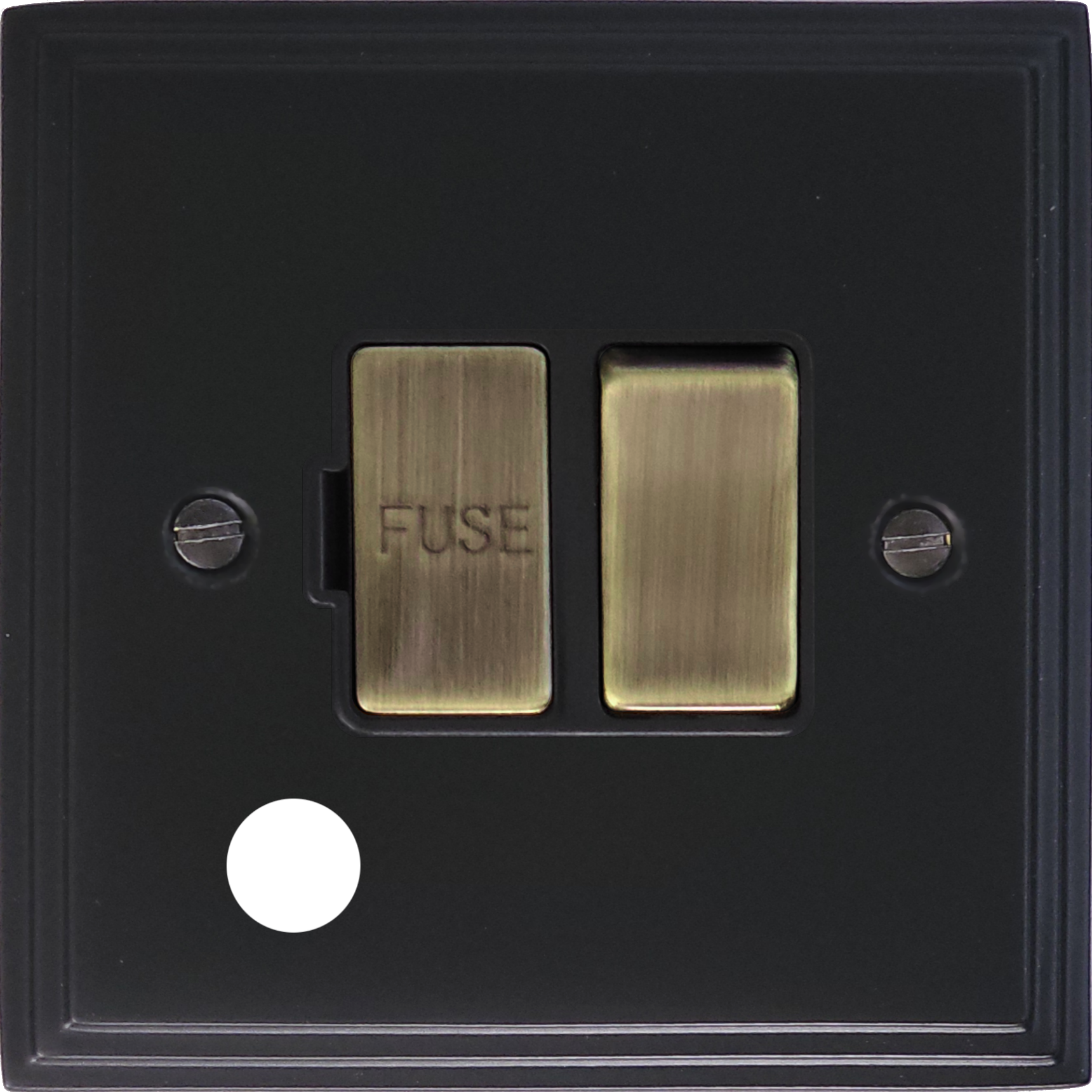 Victorian Matt Black Switched Fused Spur with Flex Outlet (Black insert/Polished Brass Switch)