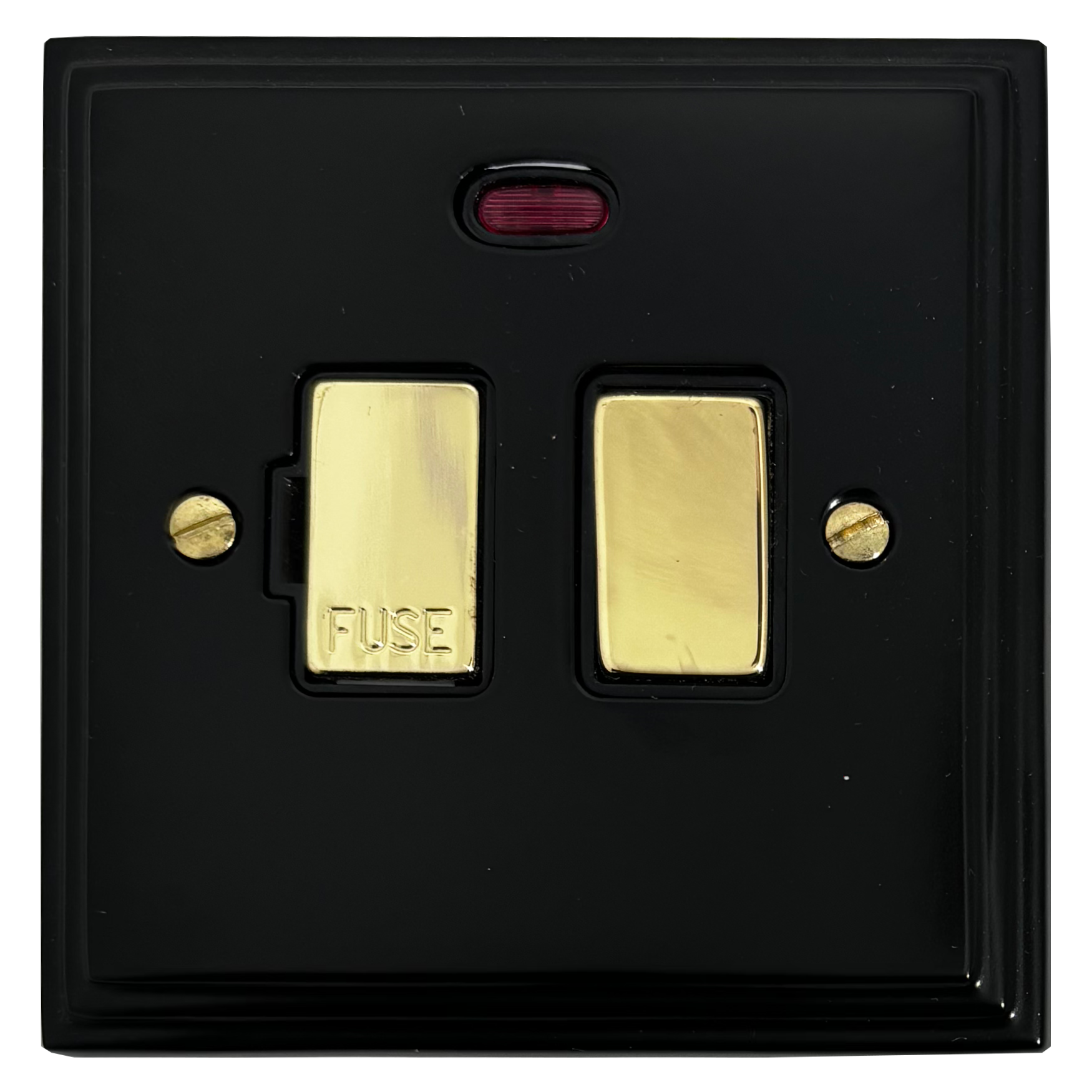 Victorian Matt Black Switched Fused Spur with Neon (Black insert/Polished Brass Switch) - G+H VFB327-PB