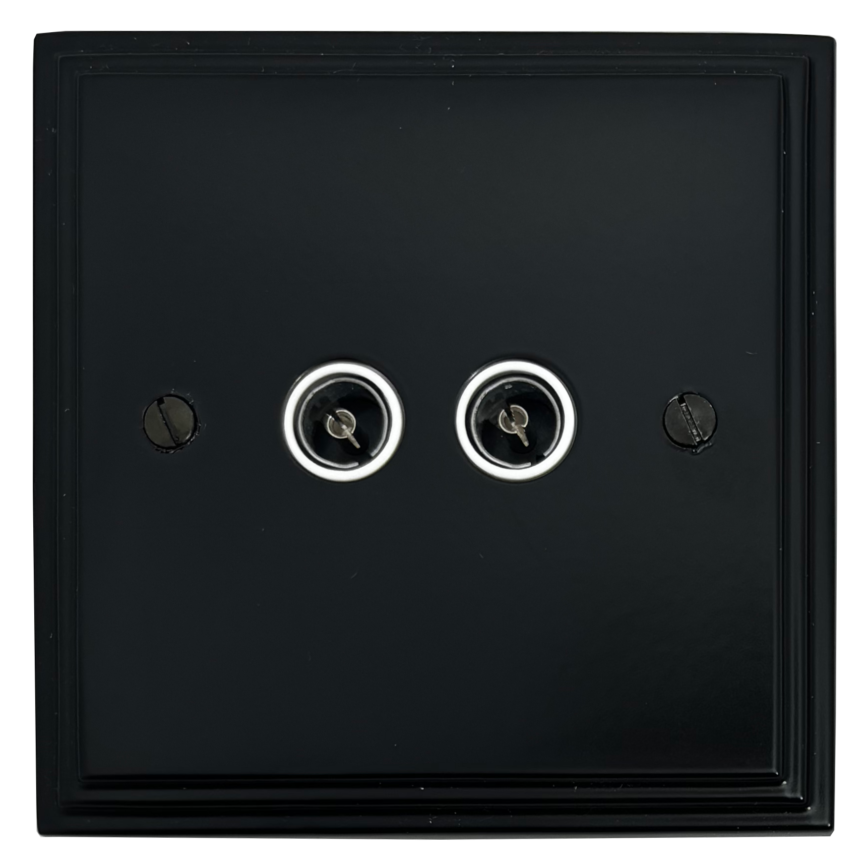 Victorian Matt Black TV Socket (2 Gang/White Inserts)